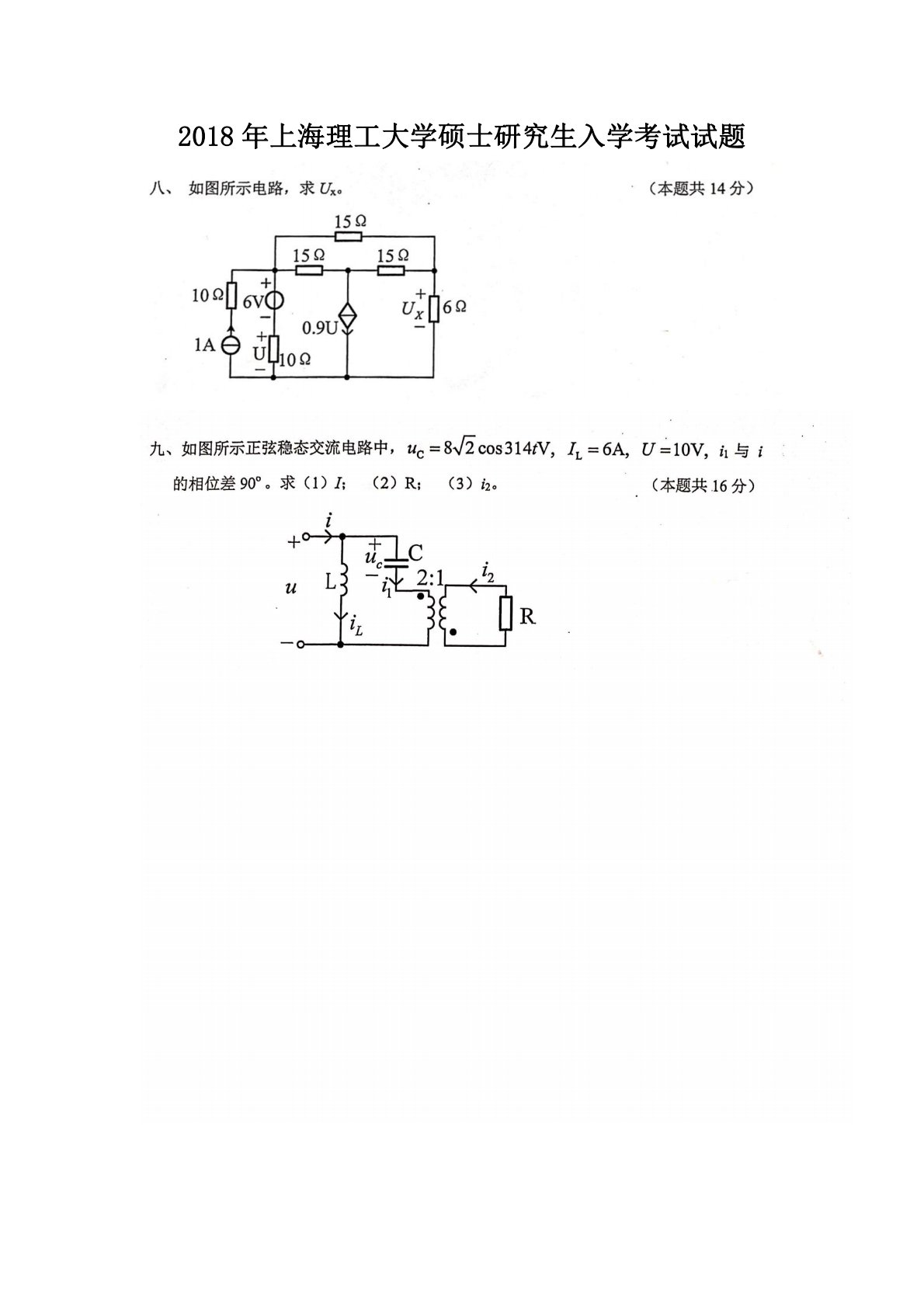 上海理工大学812电路2018年真题