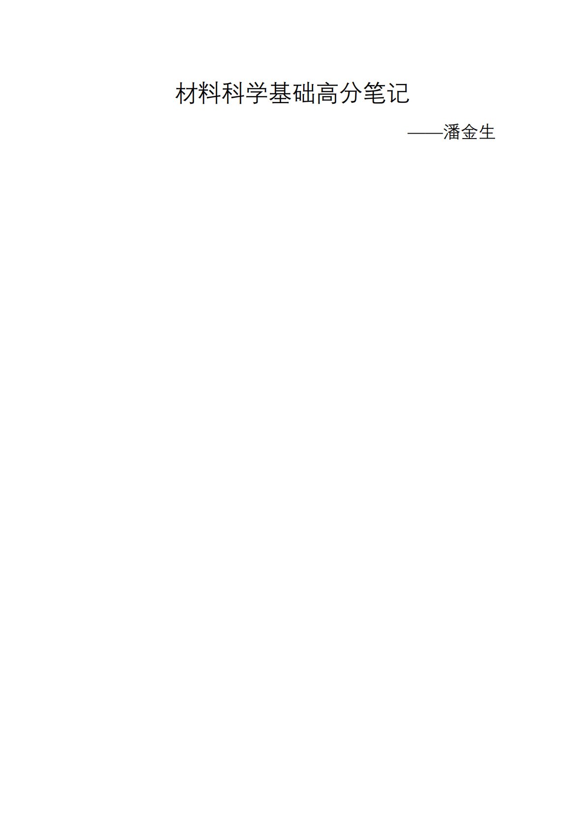 材料科学基础高分笔记——潘金生目录目录第1章晶体学基础...................................................5【本章复习指导】................................................5【本章知识框架】................................................5【本章考点精讲】................................................6【本章考研例题】.............................................