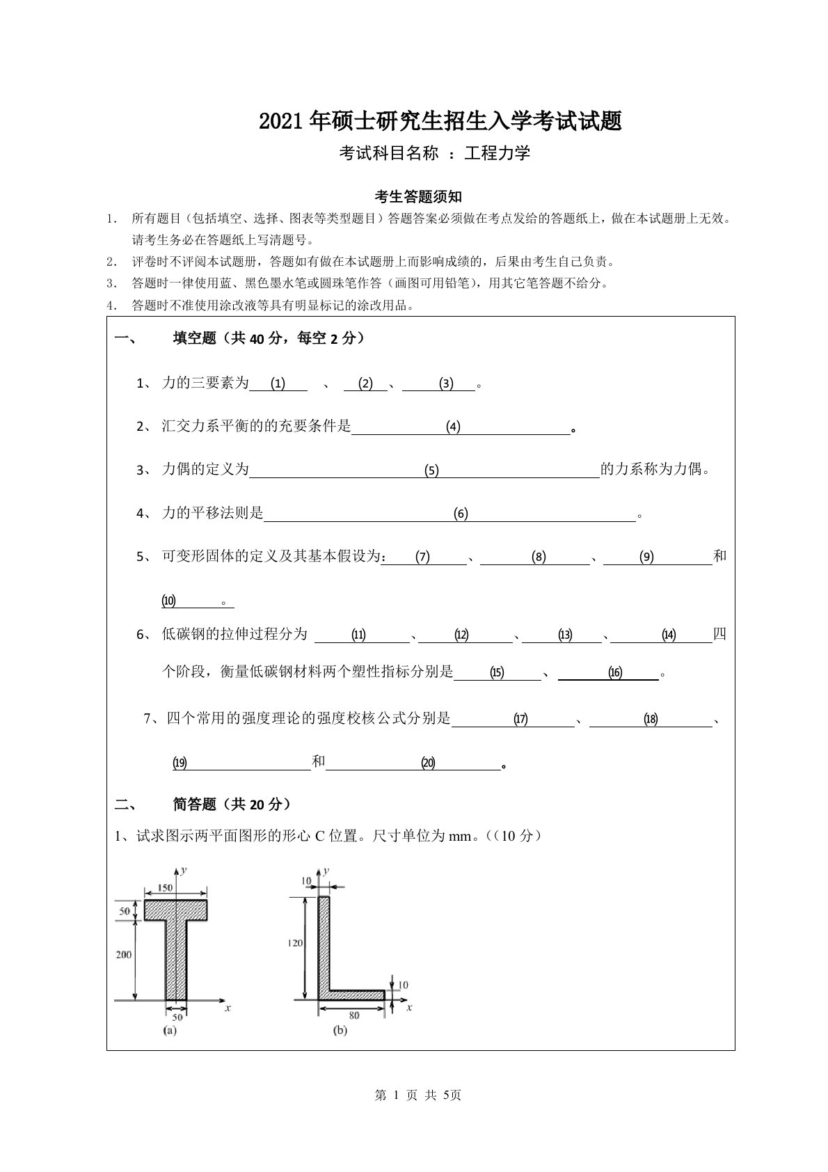 北京工业大学812材料力学2021年真题VIP专享