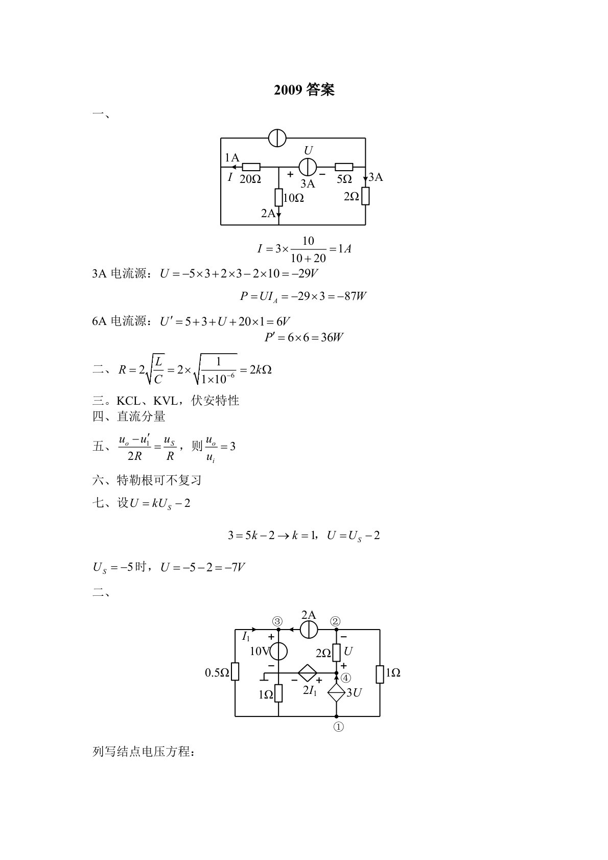 清华大学827电路原理2009年真题答案