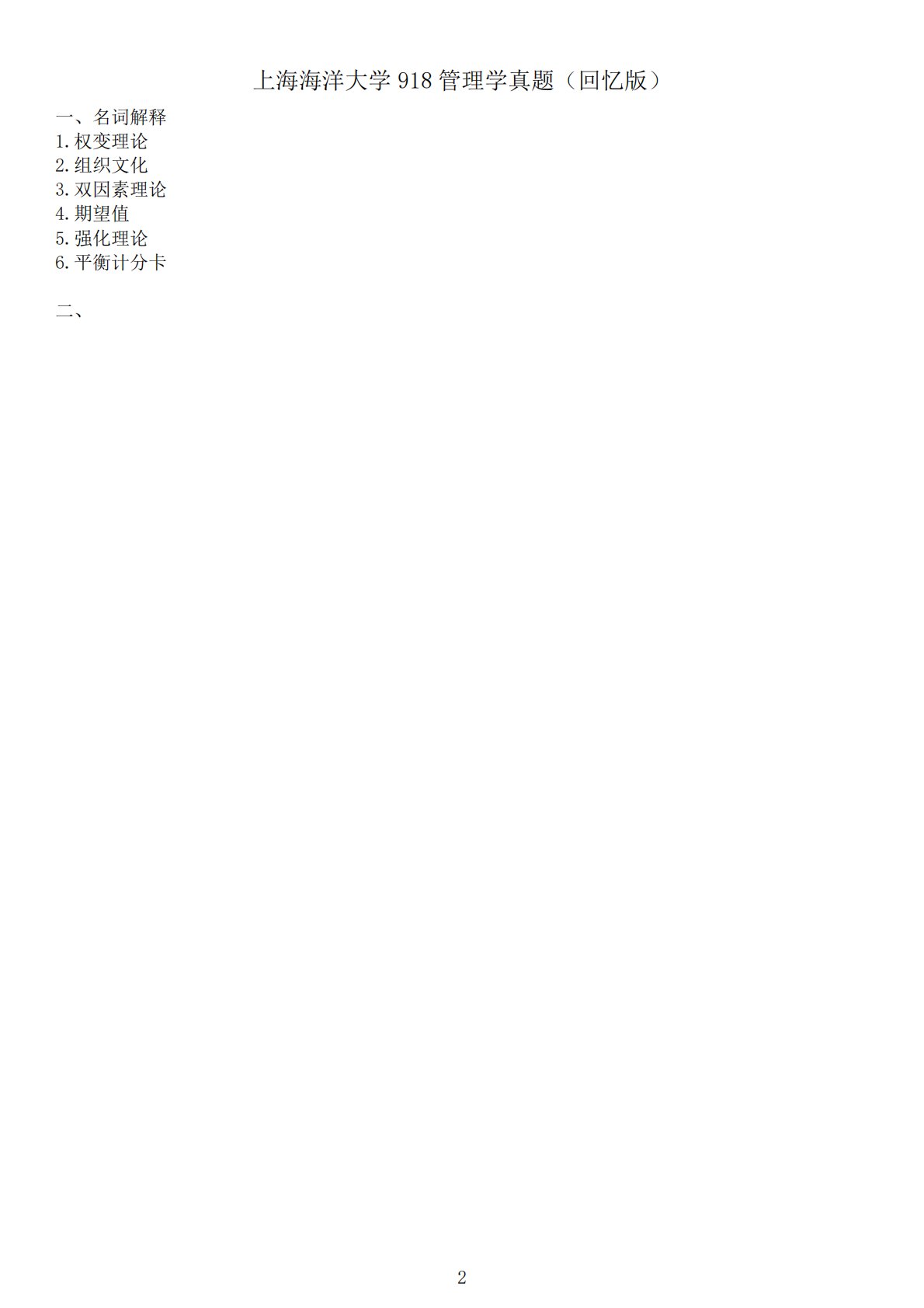 上海海洋大学918管理学真题(回忆版)