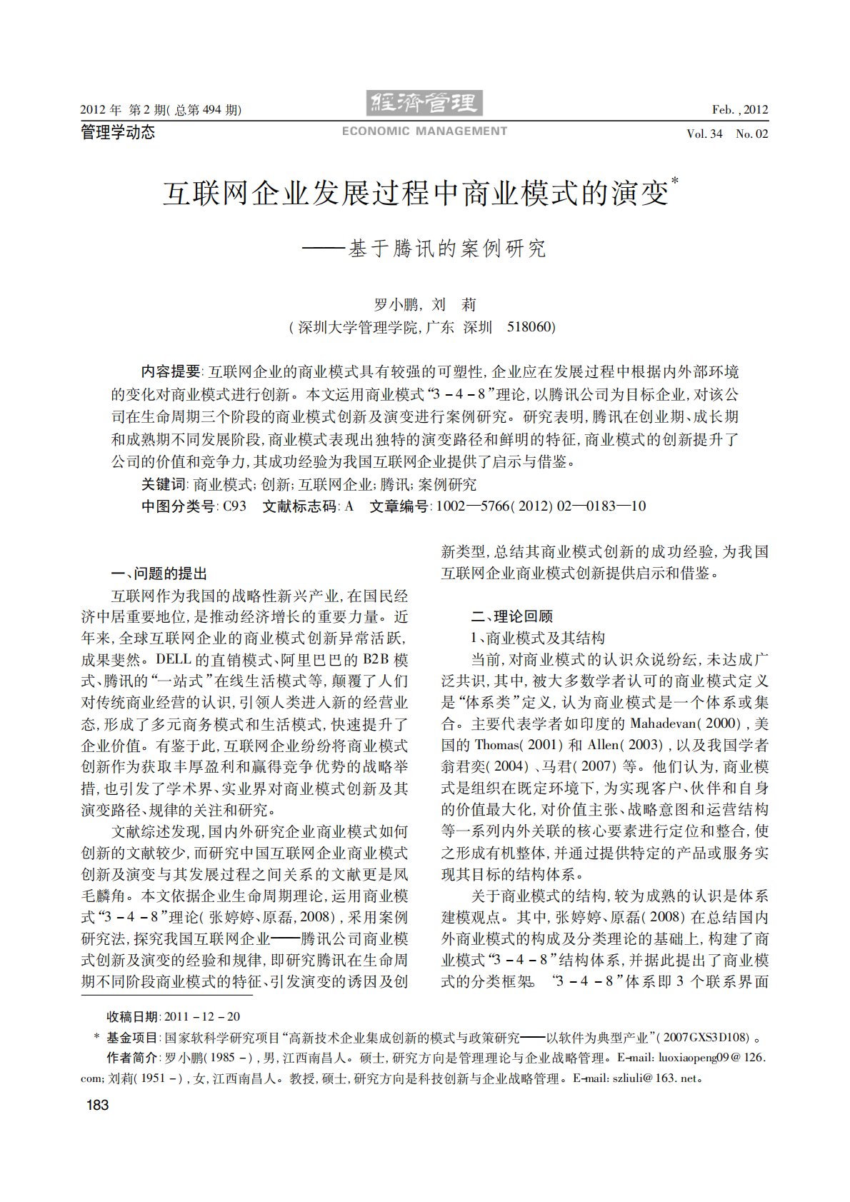 ÄêµÚÆÚ(×ÜµÚÆÚ)£¬¹ÜÀíѧ¶¯Ì¬»¥ÁªÍøÆóÒµ·¢Õ¹¹ý³ÌÖÐÉÌҵģʽµÄÑݱä»ùÓÚÌÚѶµÄ°¸ÀýÑо¿ÂÞСÅô£¬ÁõÀò(ÉîÛÚ´óѧ¹ÜÀíѧԺ£¬¹ã¶«ÉîÛÚ)ÄÚÈÝÌáÒª:»¥ÁªÍøÆóÒµµÄÉÌҵģʽ¾ßÓнÏÇ¿µÄ¿ÉËÜÐÔ£¬ÆóÒµÓ¦ÔÚ·¢Õ¹¹ý³ÌÖиù¾ÝÄÚÍⲿ»·¾³µÄ±ä»¯¶ÔÉÌҵģʽ½øÐд´Ð±¾ÎÄÔËÓÃÉÌҵģʽÀíÂÛ£¬ÒÔÌÚѶ¹«Ë¾ÎªÄ¿±êÆóÒµ£¬¶Ô¸Ã¹«Ë¾ÔÚÉúÃüÖÜÆÚÈý¸ö½×¶ÎµÄÉÌҵģÊ...