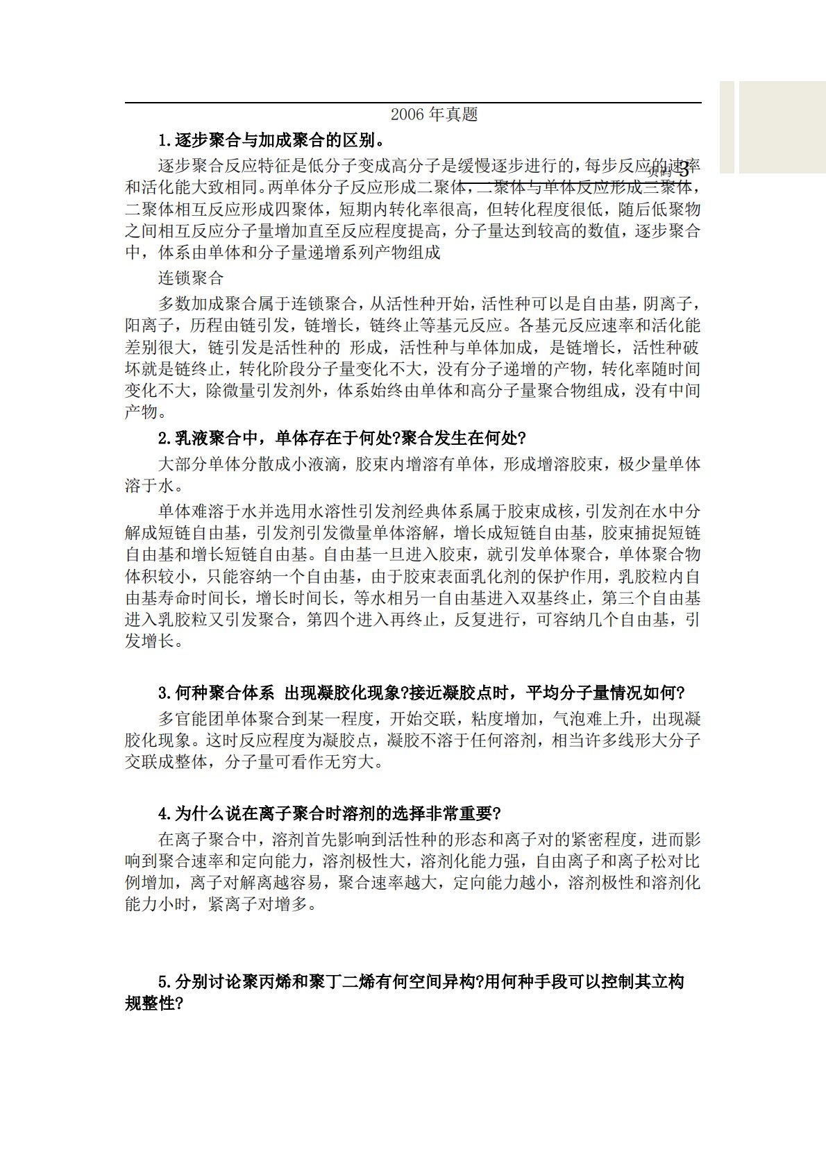 华东师范大学805普通化学原理二2006年真题答案(高分子化学)(回忆版)