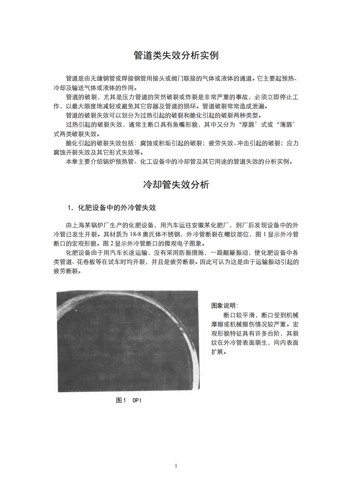 管道类失效分析实例管道是由无缝钢管或焊接钢管用接头或阀门联接的气体或液体的通道。它主要起预热、冷却及输送气体或液体的作用。管道的破裂,尤其是压力管道的突然破裂或炸裂是非常严重的事故,必须立即停止工作,以最大限度地减轻或避免其它容器及管道的损坏。管道破裂常常造成泄漏。管道的破裂失效可以划分为过热引起的破裂和脆化引起的破裂两种类型。过热引起的破裂失效,通常主断口具有鱼嘴形貌,其中又分为“厚唇’式或“薄唇’式两类破裂失效。脆化引起的破裂失效包括:腐蚀或积垢引起的破裂;疲劳失效、冲击引起的破裂;应力腐蚀开裂失效及其它形式失效等。本章主要介绍锅炉预热管、化工设备中的冷却管及其它用途的管道失效的分析实例。...
