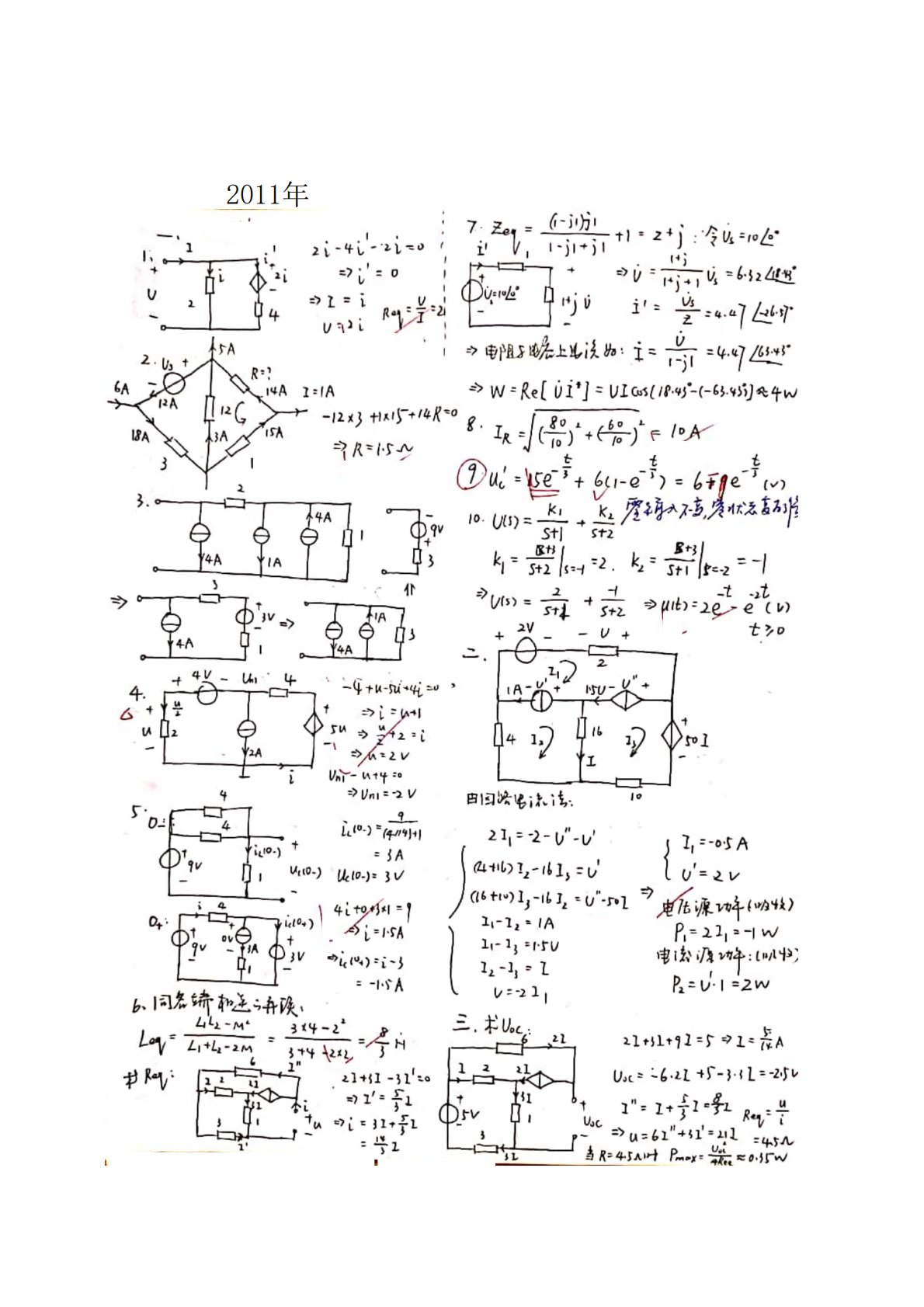 华东交通大学810电路2011年真题答案手写版