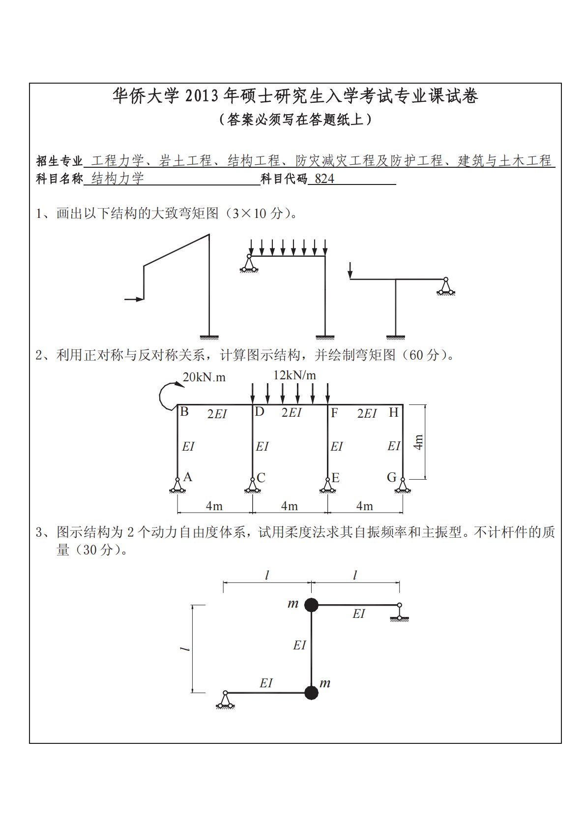 华侨大学832材料力学(土木学院)2013年真题