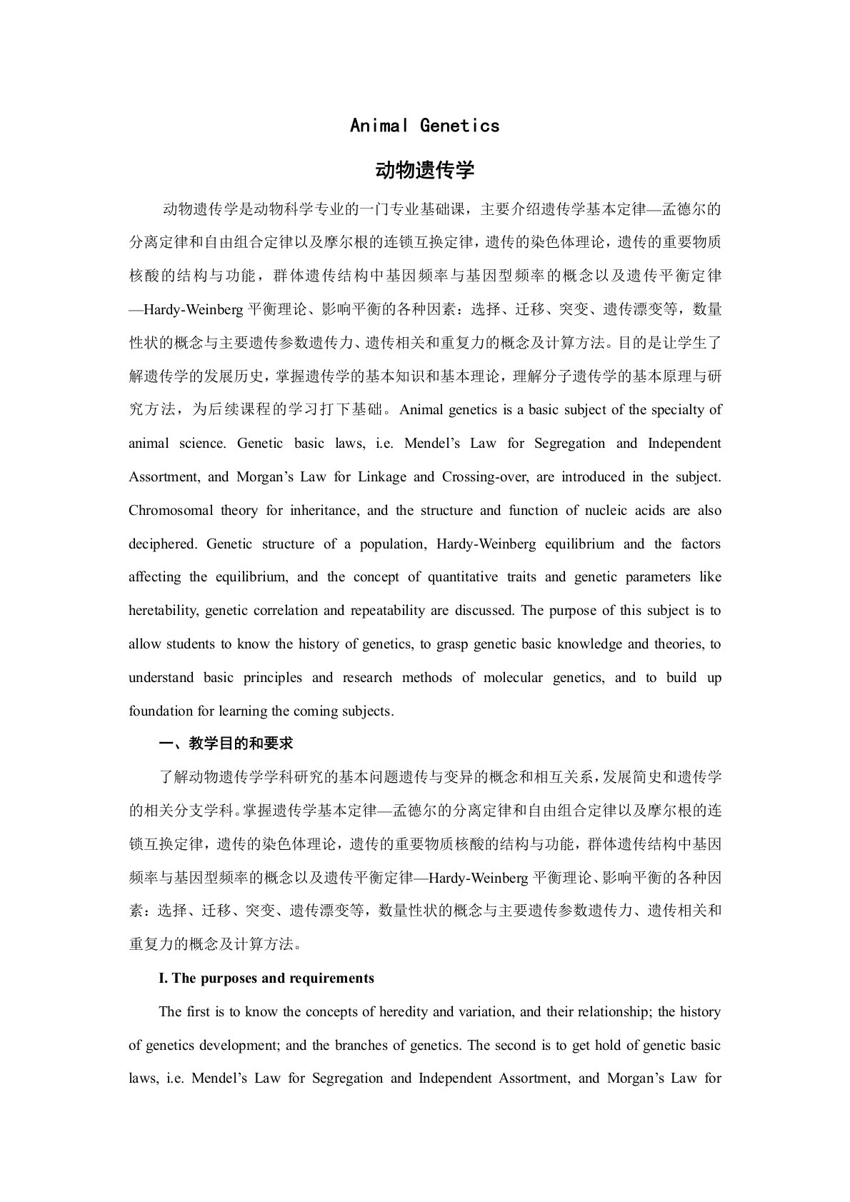 华南农业大学340农业知识综合二教学大纲(遗传).doc