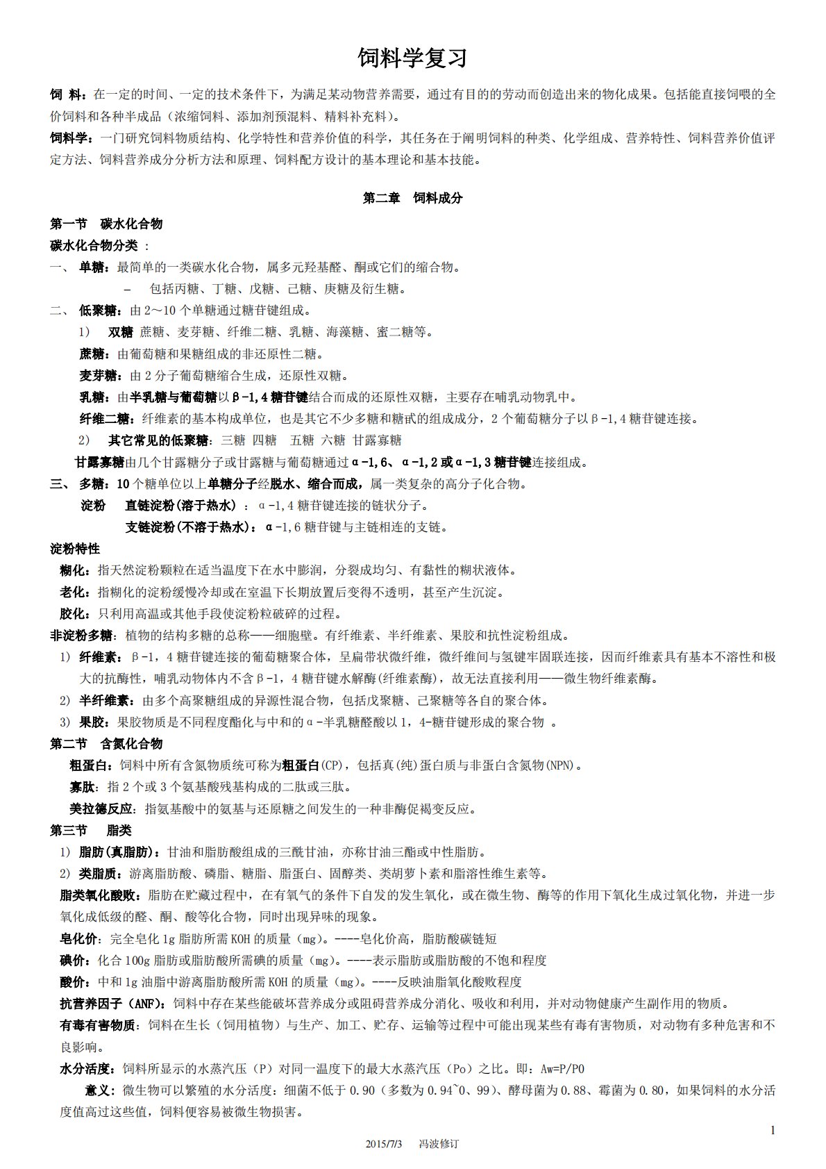 华南农业大学340农业知识综合二饲料学整理(冯波改)(饲料)