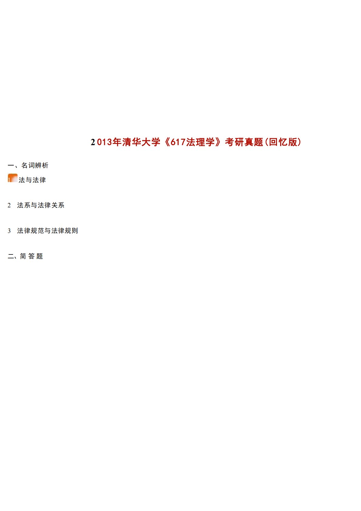 清华大学679法学综合卷(含法理学、宪法学)2013年真题回忆版