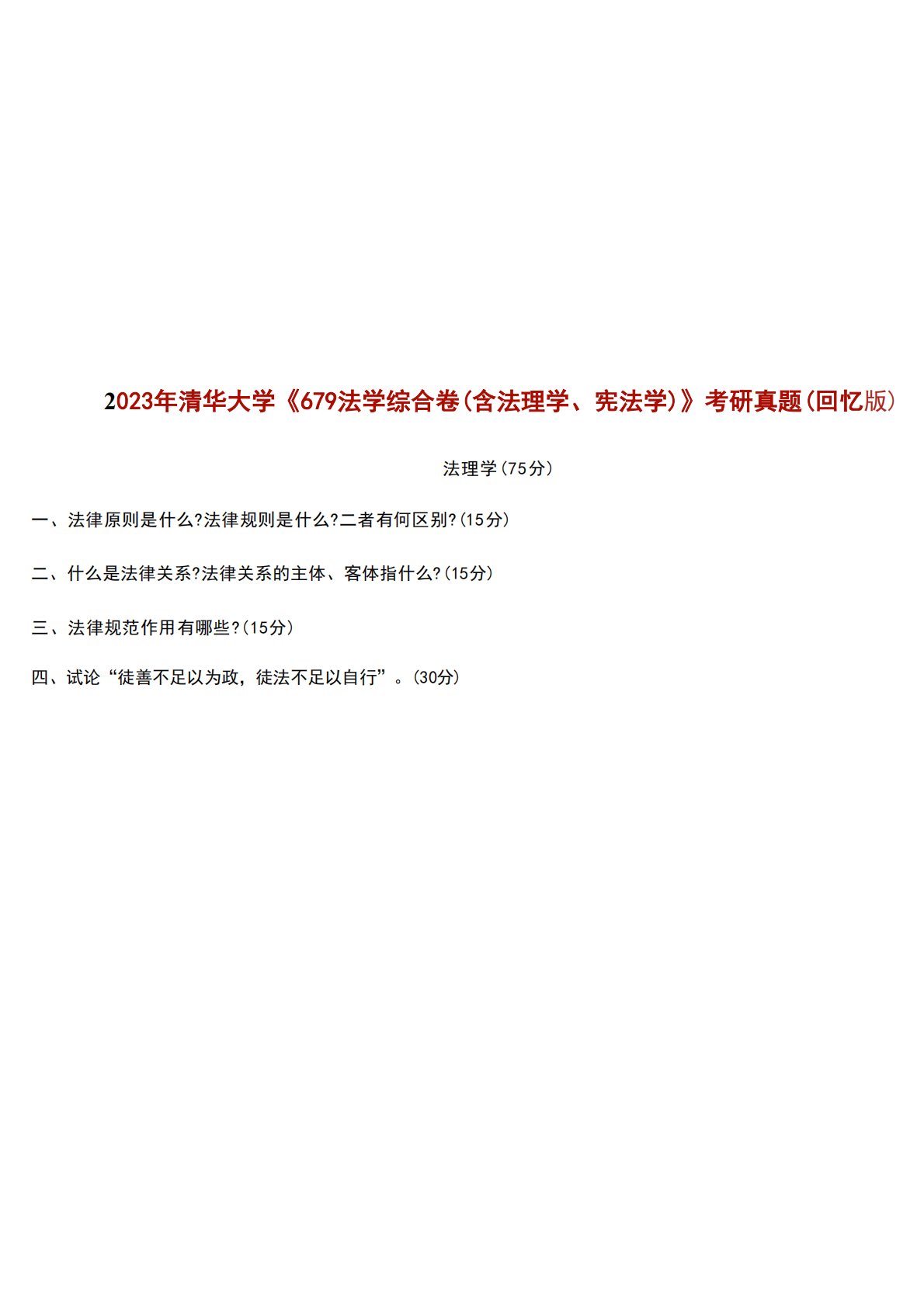 清华大学679法学综合卷(含法理学、宪法学)2023年真题回忆版