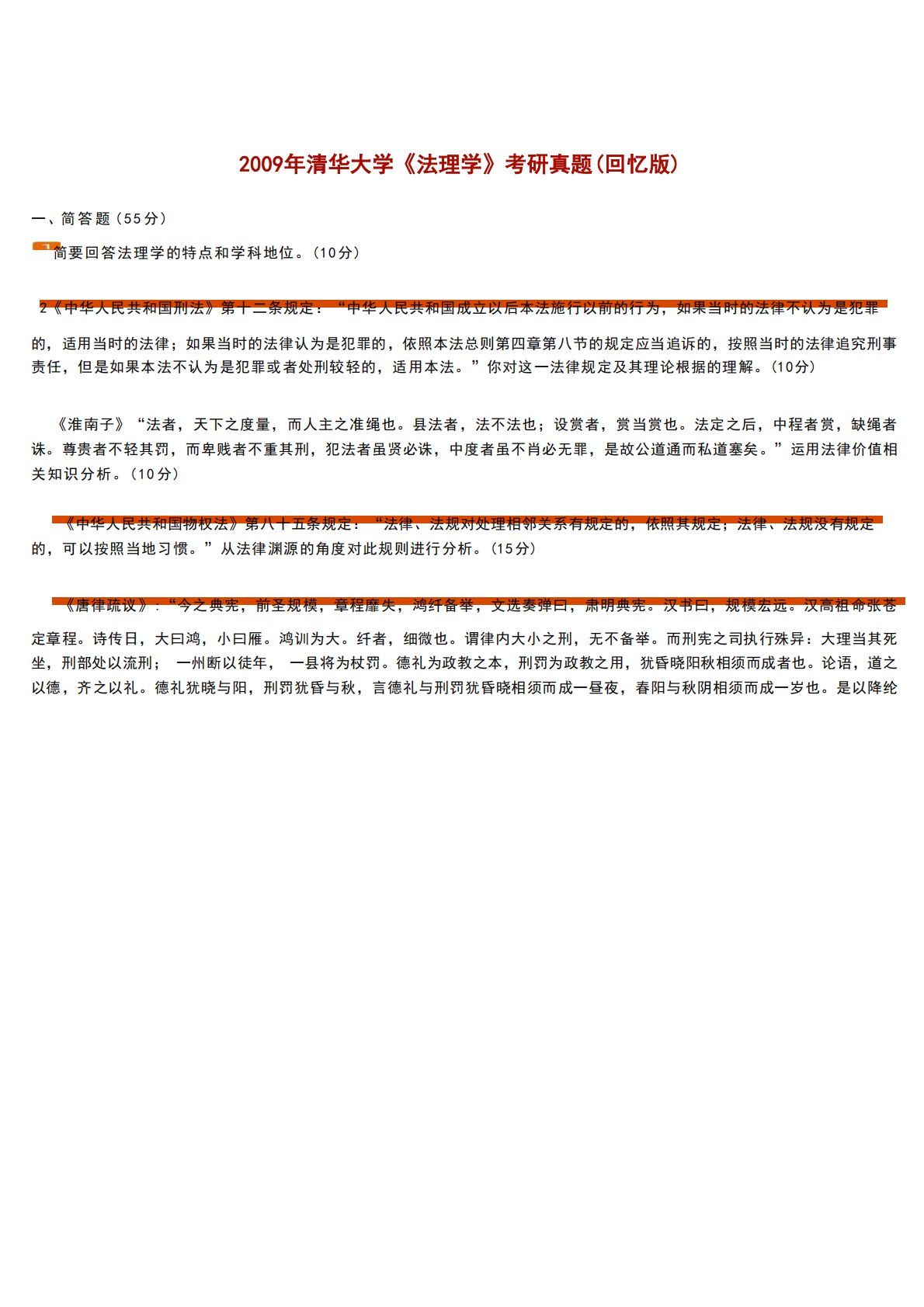 清华大学679法学综合卷(含法理学、宪法学)2009年真题回忆版1