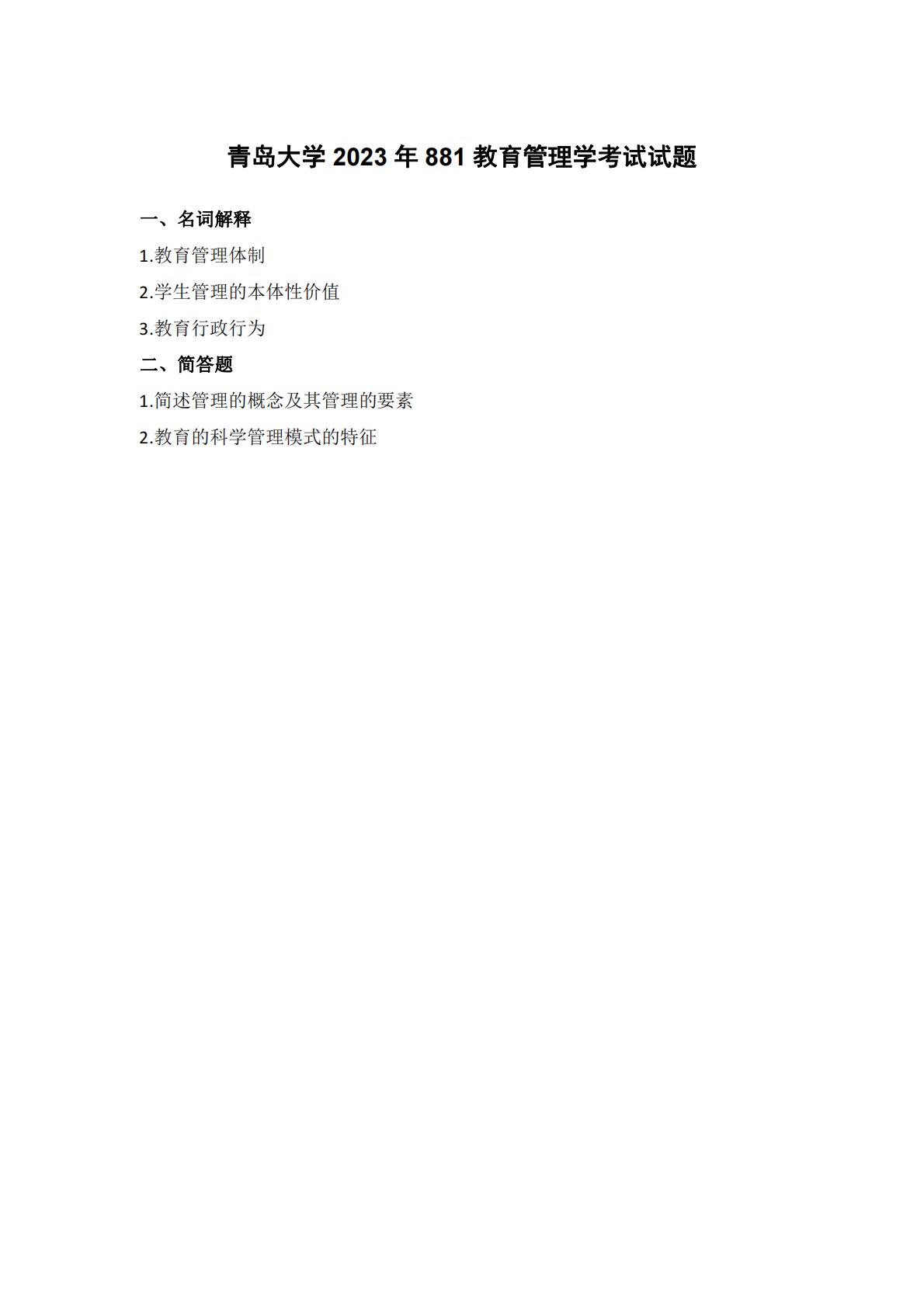 青岛大学881教育管理学2023年真题回忆版