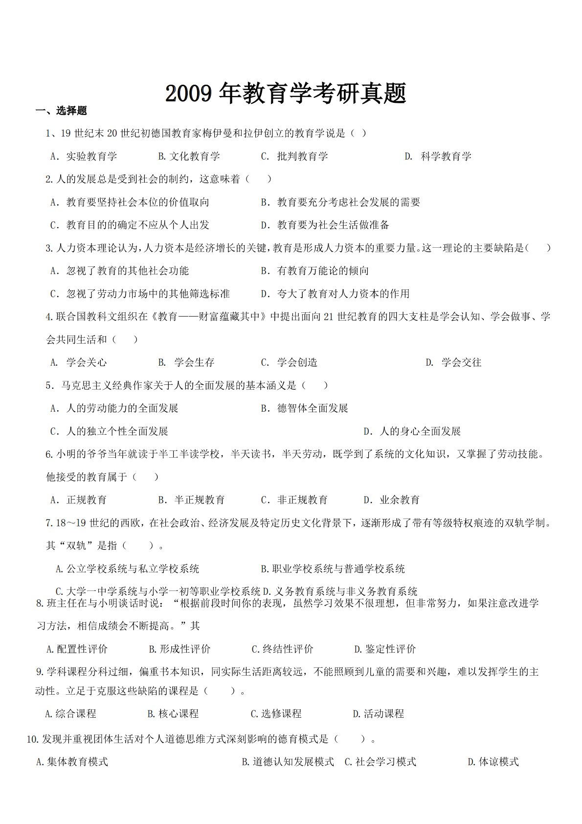 青岛大学333教育综合2009年真题