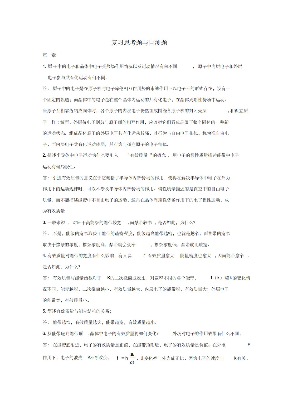 ¸´Ï°Ë¼¿¼ÌâÓë×Ô²âÌâµÚÒ»ÕÂ1.ԭ×ÓÖеĵç×Ӻ;§ÌåÖеç×ÓÊÜÊÆ³¡×÷ÓÃÇé¿öÒÔ¼°Ô˶¯Çé¿öÓкβ»Í¬,Ô×ÓÖÐÄÚ²ãµç×ÓºÍÍâ²ãµç×Ó²ÎÓë¹²Óл¯Ô˶¯Óкβ»Í¬¡£´ð£ºÔ×ÓÖеĵç×ÓÊÇÔÚÔ×ÓºËÓëµç×Ó¿âÂ×Ï໥×÷ÓÃÊÆµÄÊø¸¿×÷ÓÃÏÂÒÔµç×ÓÔÆµÄÐÎʽ´æÔÚ£¬Ã»ÓÐÒ»¸ö¹Ì¶¨µÄ¹ìµÀ£»¶ø¾§ÌåÖеĵç×ÓÊÇÔÚÕû¸ö¾§ÌåÄÚÔ˶¯µÄ¹²Óл¯µç×Ó£¬ÔÚ¾§ÌåÖÜÆÚÐÔÊÆ³¡ÖÐÔ˶¯¡£...