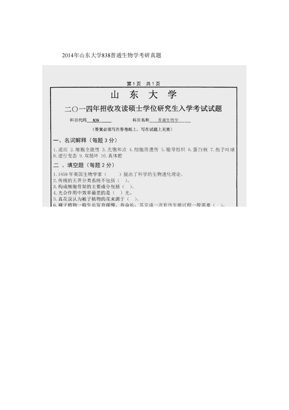 2014年山东大学838普通生物学考研真题2014年山东大学838普通生物学考研真题百校文库—海量高校资料共享库百校文库是一个线上大学生专业学习资料共享平台,致力于通过用户自主上传与分享,打造一个涵盖各大高校、各学科门类的免费资源中心。平台已积累50万+套历年真题与100万+条学习文档,覆盖绝大多数高校专业,所有资料均由各大高校学生自主上传。✅资料透明,直观预览新增全站资料目录功能,所有资源分类清晰、一目了然。访问在线目录,即可快速浏览平台资源全貌,了解资料覆盖范围。点击查看实时更新的资源总览:【百校文库最新资料目录】✅严格审核,保障基础质量为确保内容可用性,所有用户上传资料均经过基础格式与内...