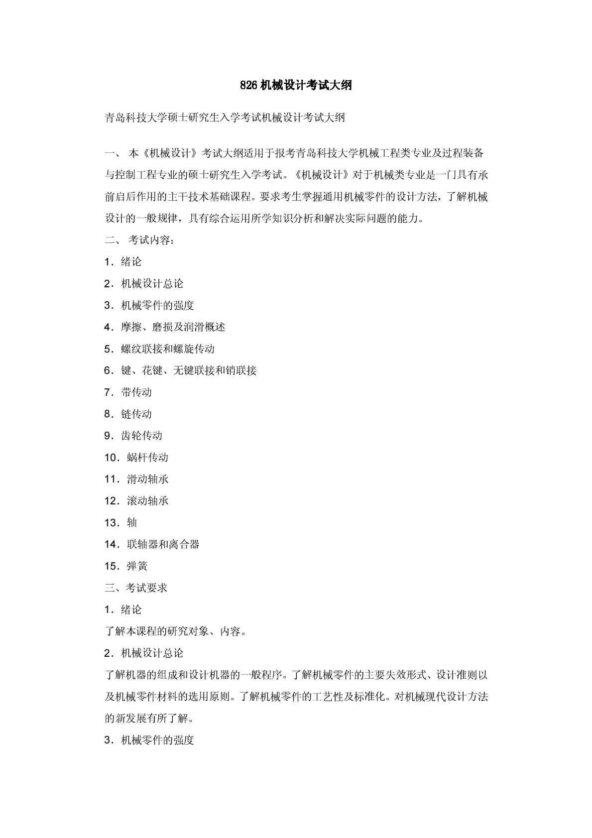青岛科技大学812机械设计考试大纲