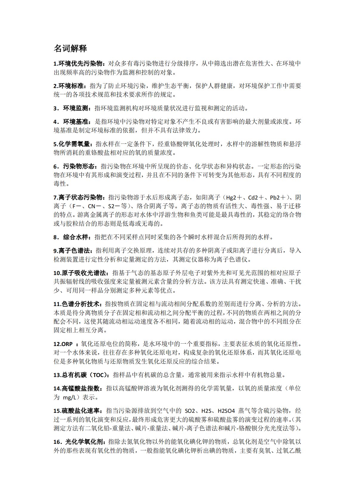 山东科技大学837环境监测名词解释