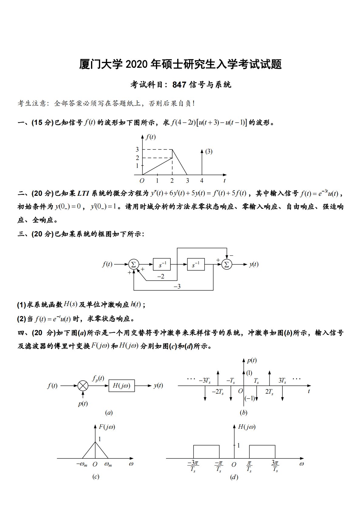 厦门大学847信号与系统2020年真题