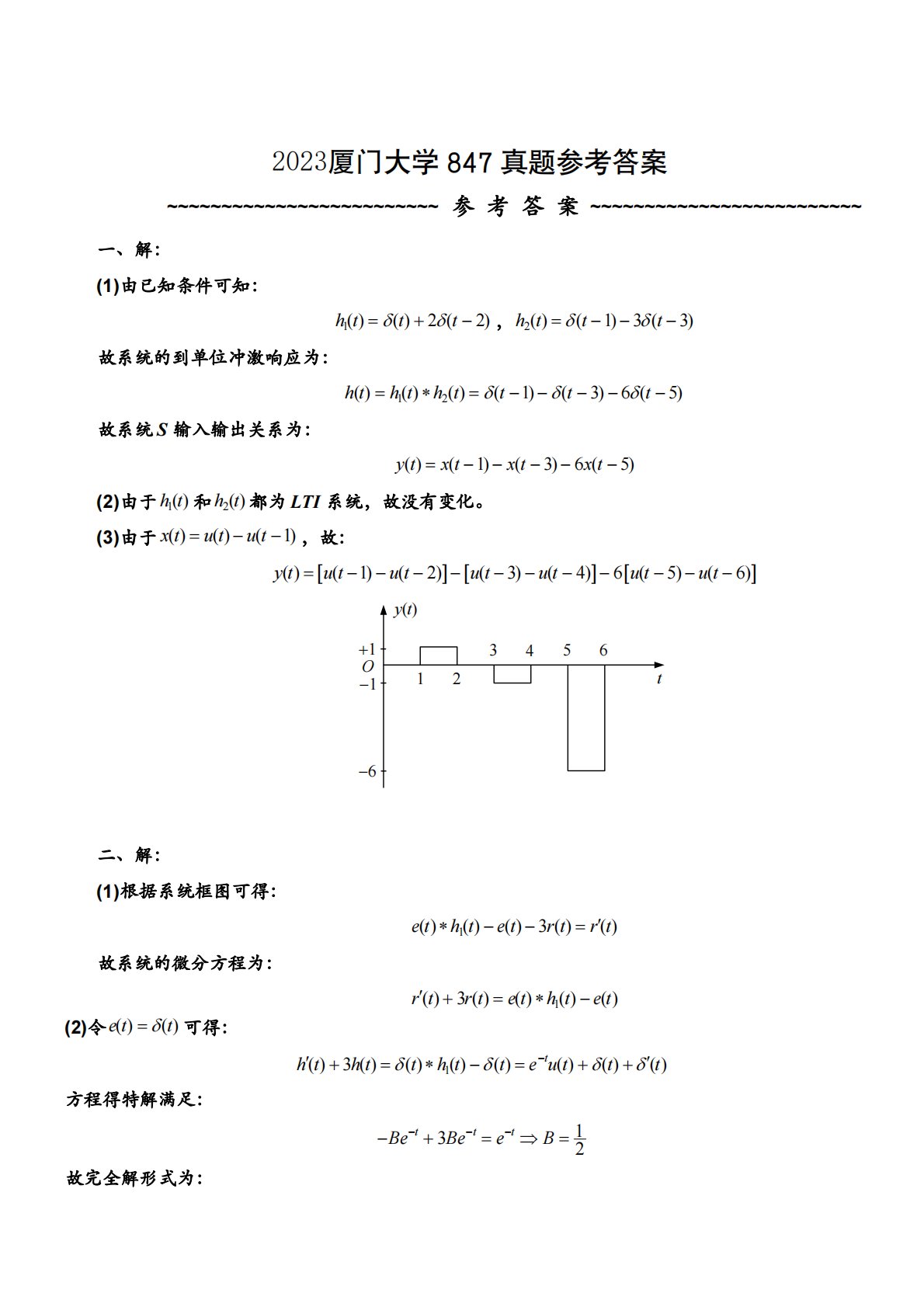 (2)令e(t)(t)可得:1()3()()()()()()()hthtthtteutttt方程得特解满足:20230ÊvЇ5•IsÃ~~~~~~~~~~~~~~~~~~~~~~~~~参考答案~~~~~~~~~~~~~~~~~~~~~~~~~一、解:(1)由已知条件可知:1()()2(2)httt2()(1)3(3),httt故系统的到单位冲激响应为:12()()()(1)(3)6(5)hththtttt故系统S输入输出关系为:()(1)(3)6(5)ytxtxtxt(2)由于ht...