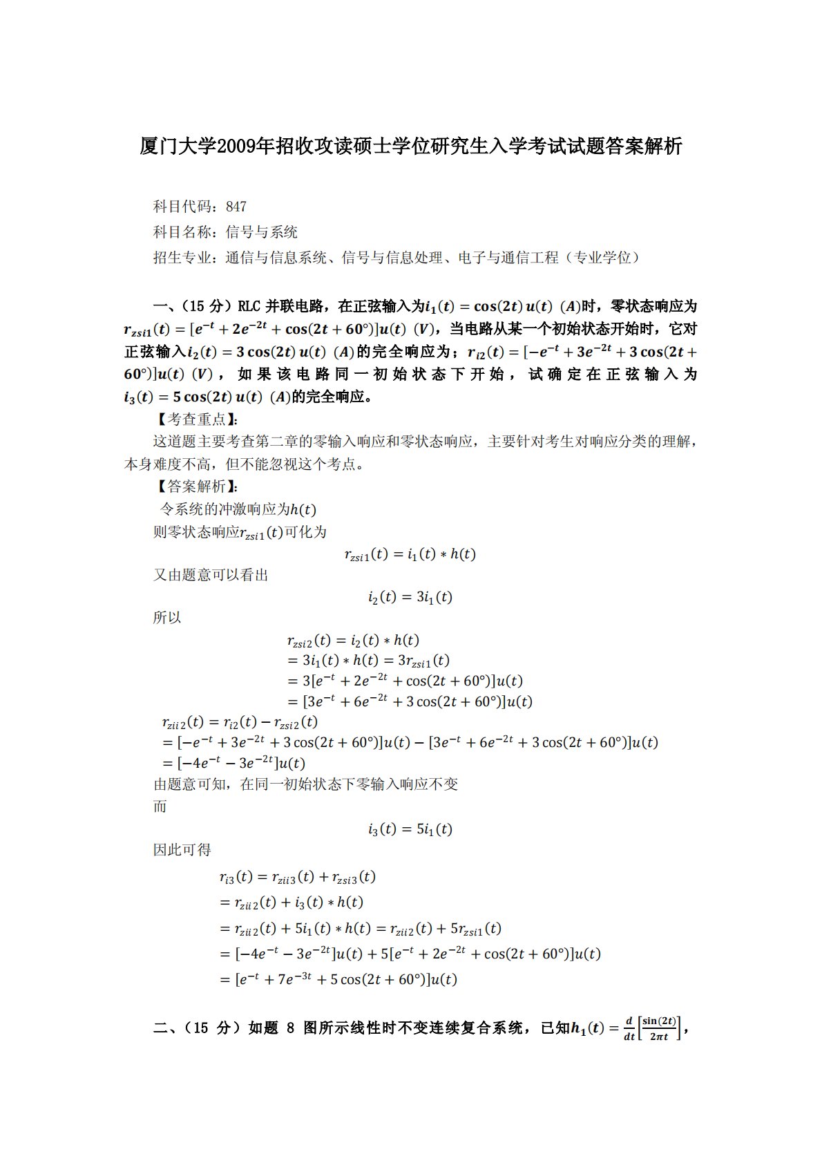 厦门大学847信号与系统2009年真题及答案.pdf