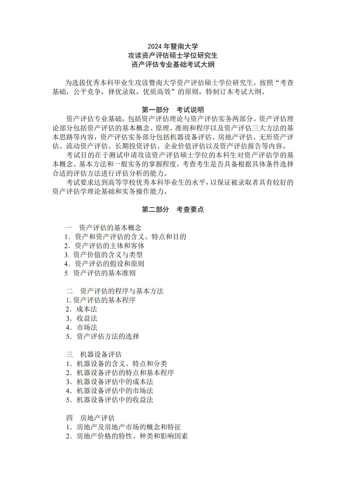暨南大学436资产评估专业基础2024大纲