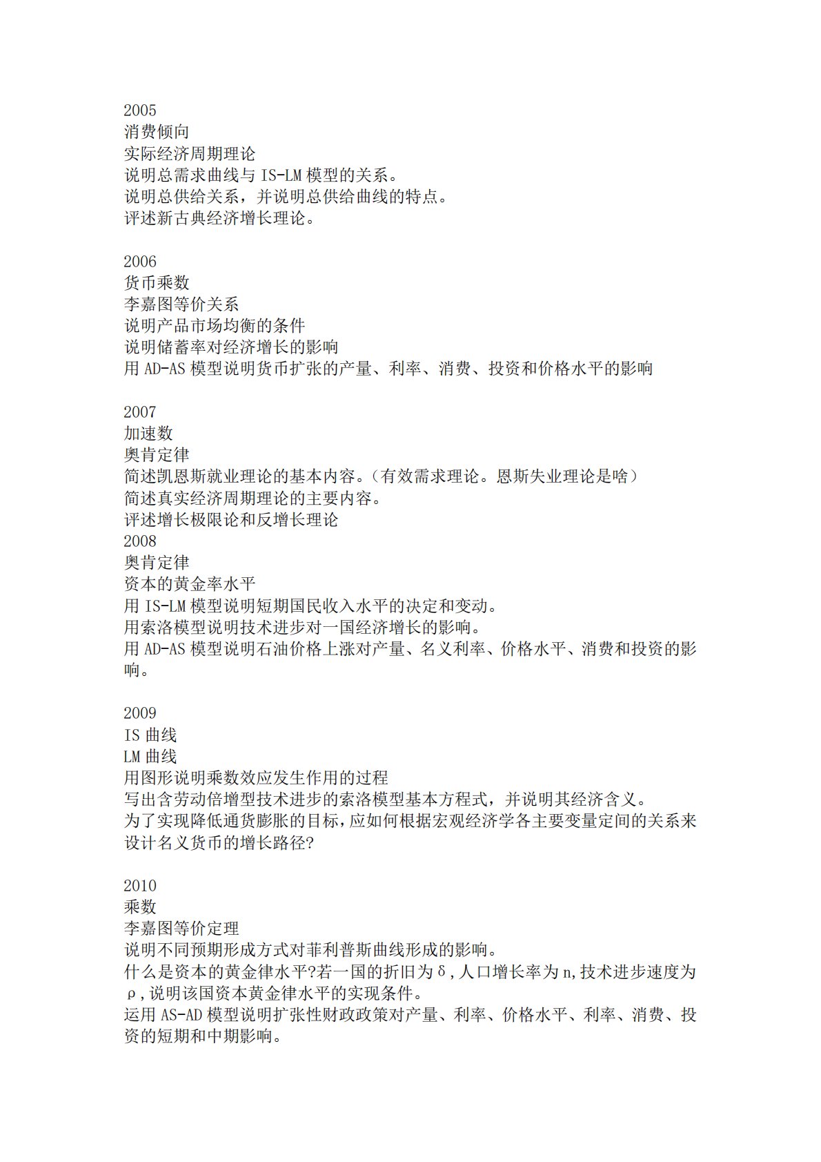 吉林大学823经济学(政治经济学、西方经济学)宏观历年真题(按年份)