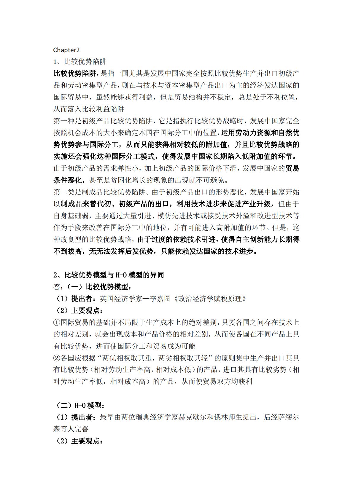 Chapter21、比较优势陷阱比较优势陷阱,是指一国尤其是发展中国家完全按照比较优势生产并出口初级产品和劳动密集型产品,则在与技术与资本密集型产品出口为主的经济发达国家的国际贸易中,虽然能够获得利益,但是贸易结构并不稳定,总是处于不利位置,从而落入比较利益陷阱第一种是初级产品比较优势陷阱,它是指执行比较优势战略时,发展中国家完全按照机会成本的大小来确定本国在国际分工中的位置,运用劳动力资源和自然优势优势参与国际分工,从而只能获得相对较低的附加值,并且比较优势战略的实施还会强化这种国际分工模式,使得发展中国家长期陷入低附加值的环节。由于初级产品的需求弹性小,加上初级产品的国际价格下滑,发展中国...