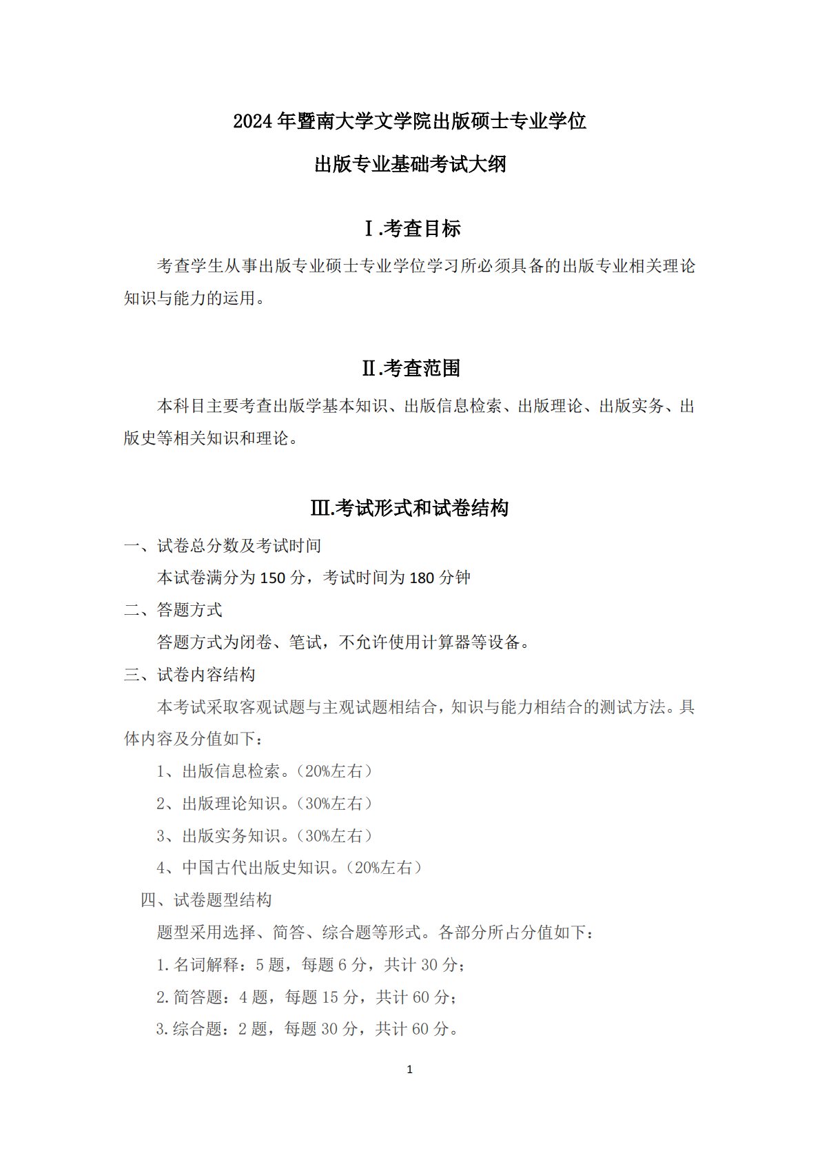 暨南大学441出版专业基础2024大纲