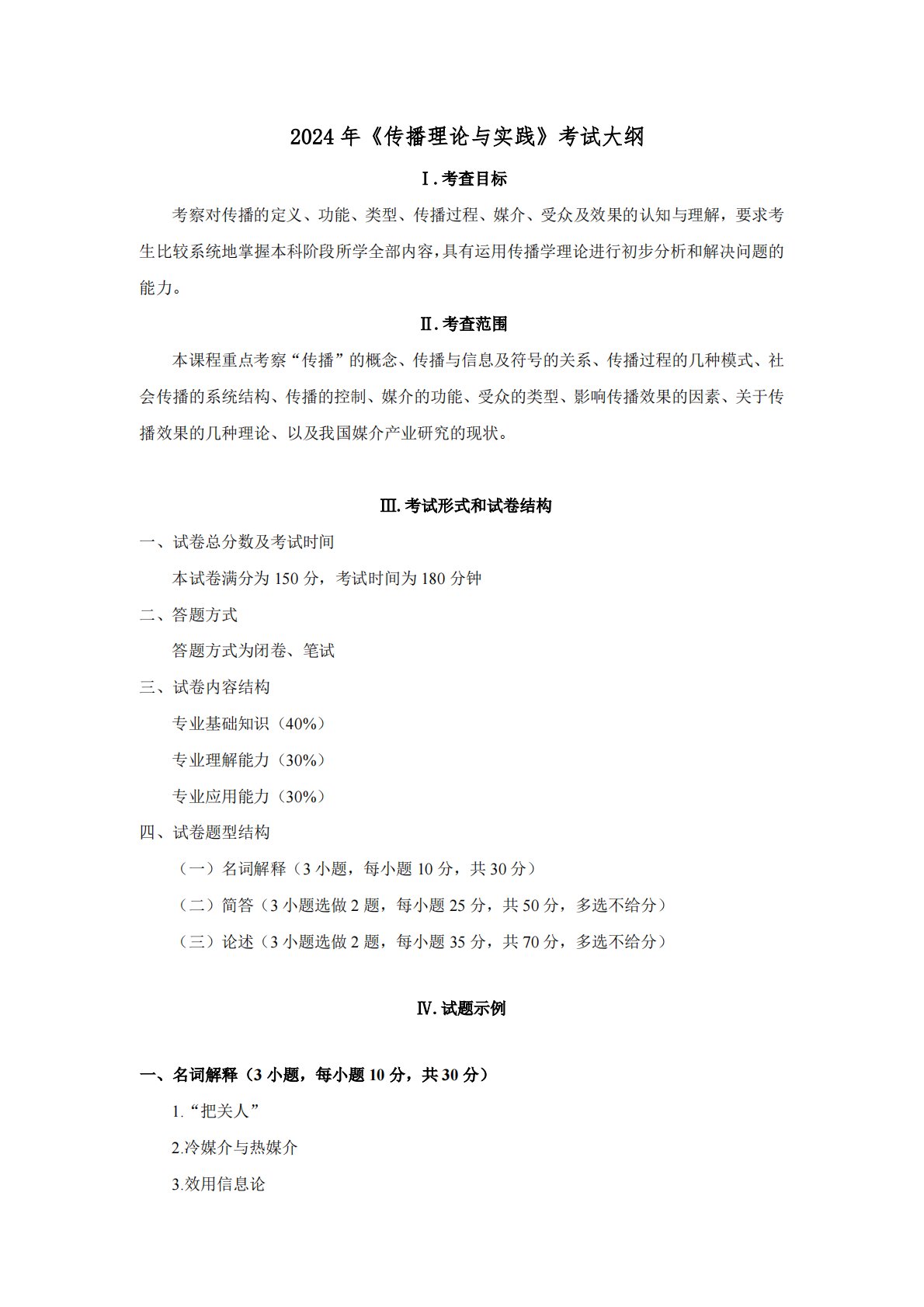2024年《传播理论与实践》考试大纲Ⅰ.考查目标考察对传播的定义、功能、类型、传播过程、媒介、受众及效果的认知与理解,要求考生比较系统地掌握本科阶段所学全部内容,具有运用传播学理论进行初步分析和解决问题的能力。.6393$\B.0;Gý&é63PÝ,´²%ÃPÝ>Ÿú1V',´£3+ÃPÝE÷0;,´/ýQ?Ã/nJPÝ,´3+55´ÃPÝ,´×fÃÂû,´Ï7-ÃG,´2«»Ã¡ýPÝxÌ,´3Pã¾PÝxÌ,´/ý*6AêÃúA-Âû×J.D0¦,´...