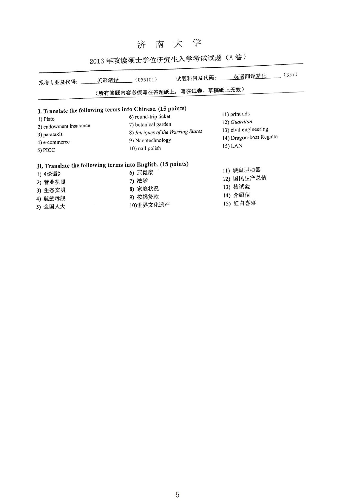 济南大学357翻译基础(英语)2013年真题