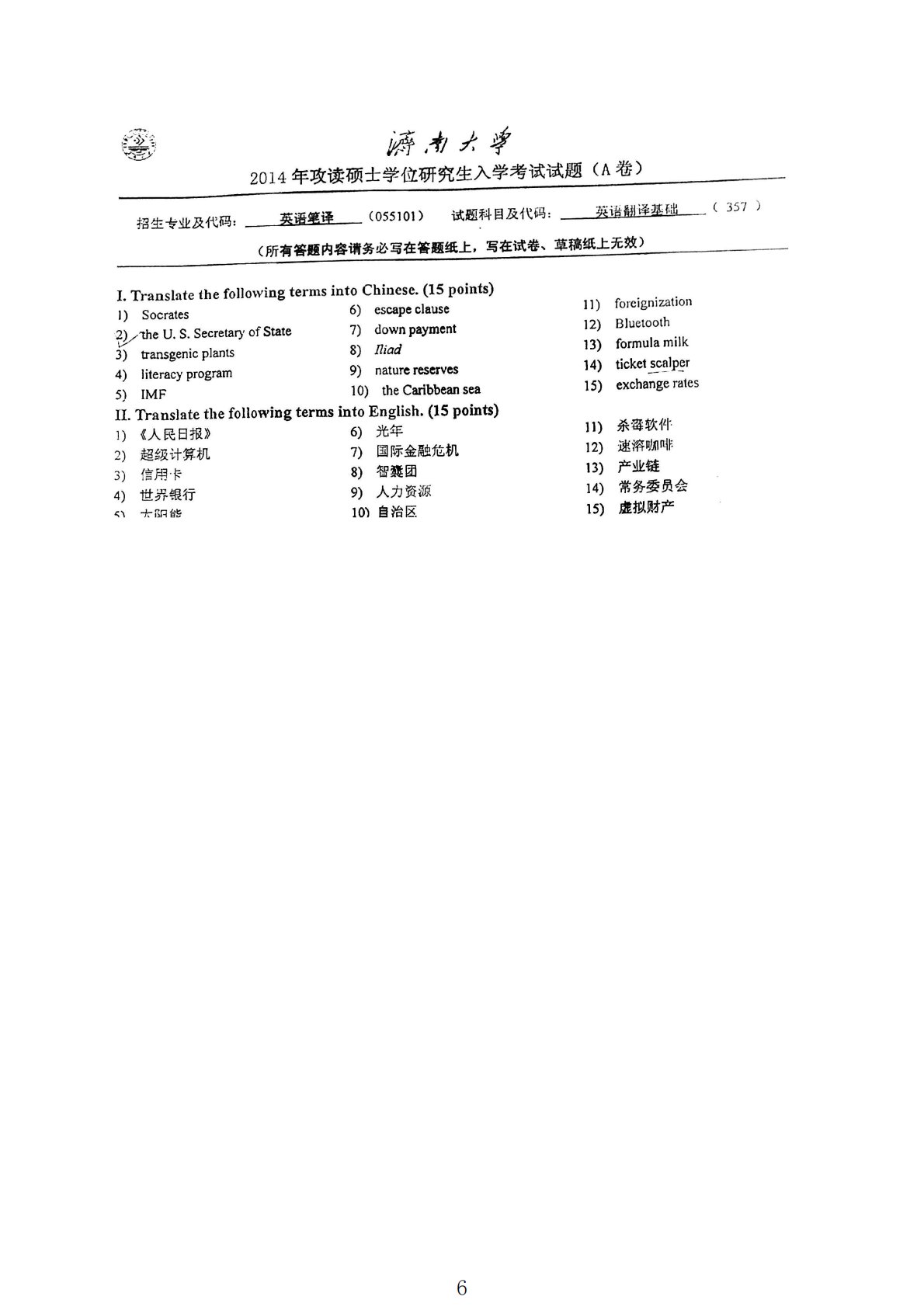 济南大学357翻译基础(英语)2014年真题