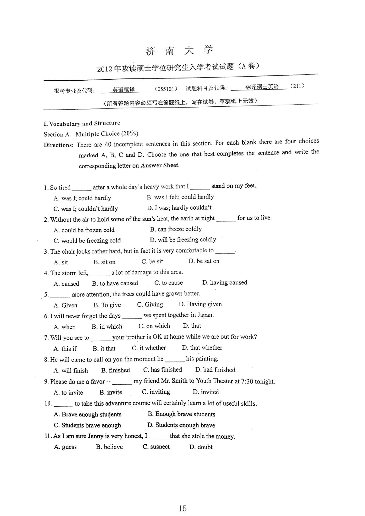 济南大学211翻译硕士2012年真题