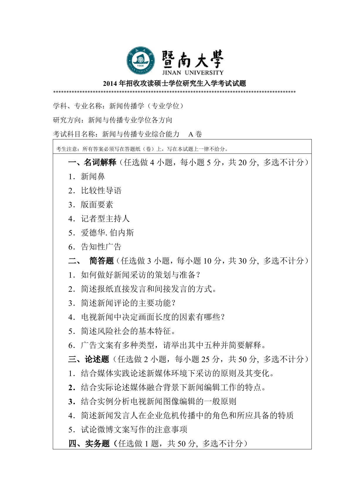 厦门大学334新闻与传播专业综合能力2025年真题