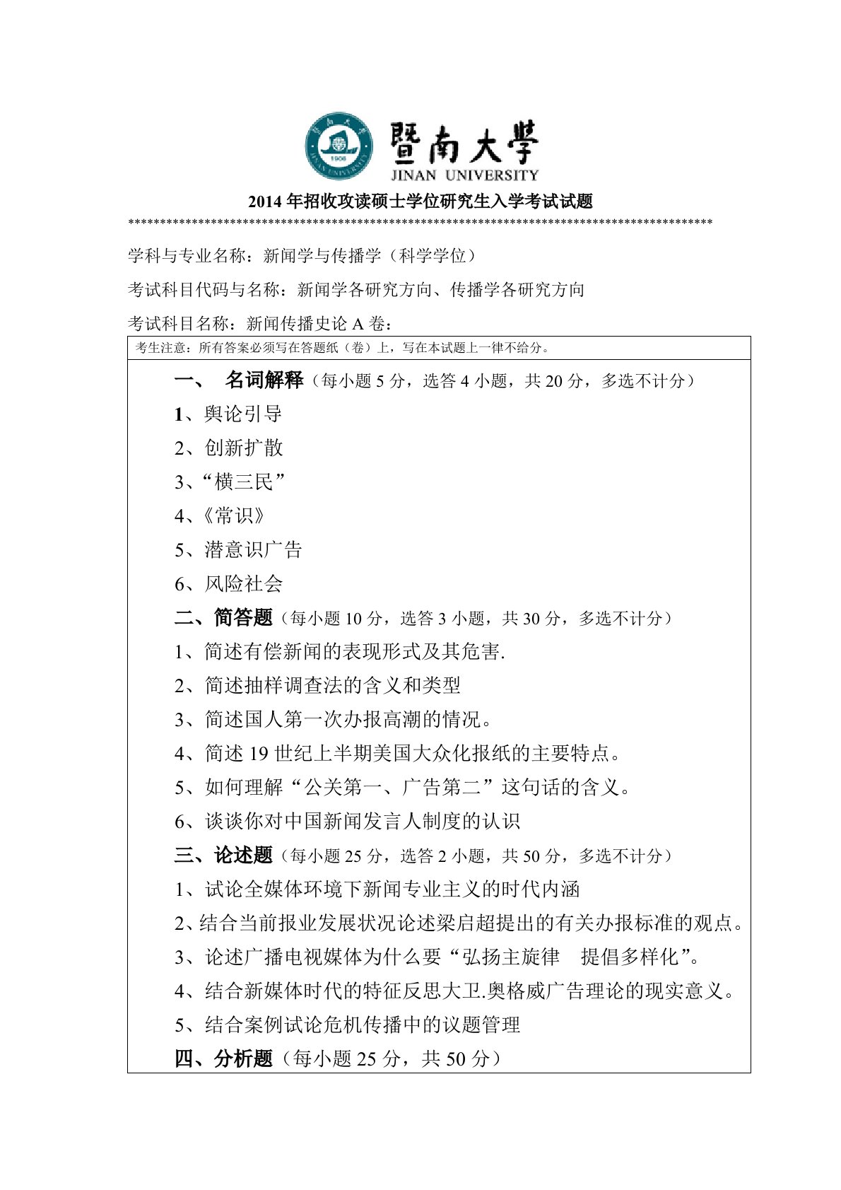 厦门大学334新闻与传播专业综合能力2025年真题