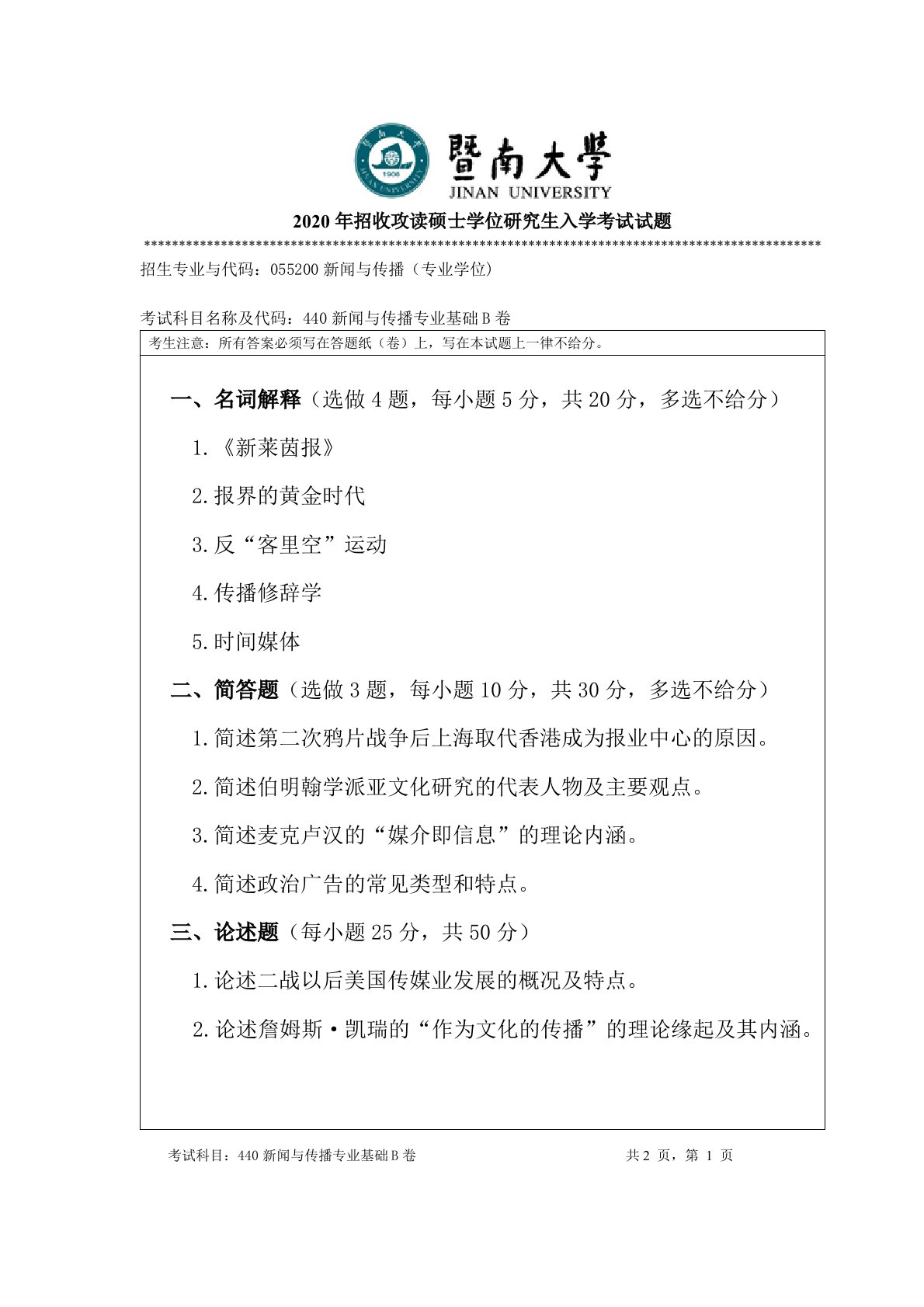 暨南大学440新闻与传播专业基础2020年真题.doc