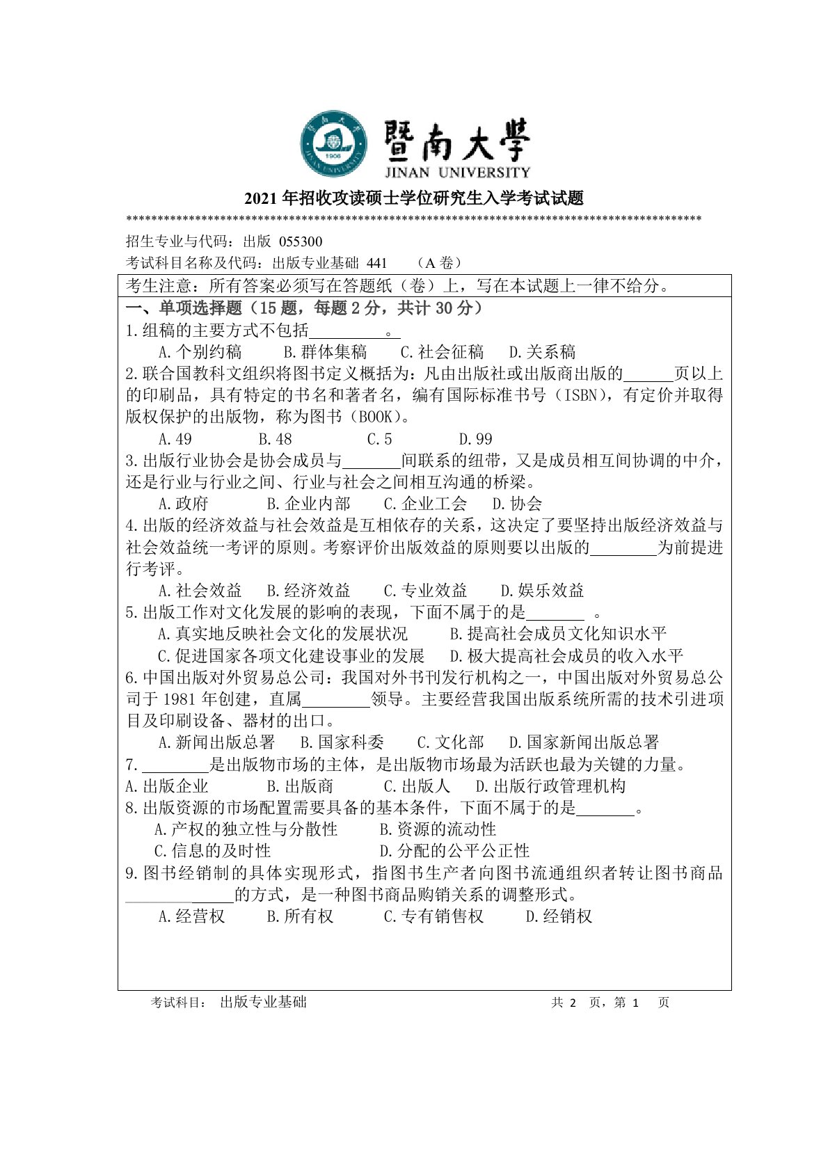 厦门大学440新闻与传播专业基础2024年真题