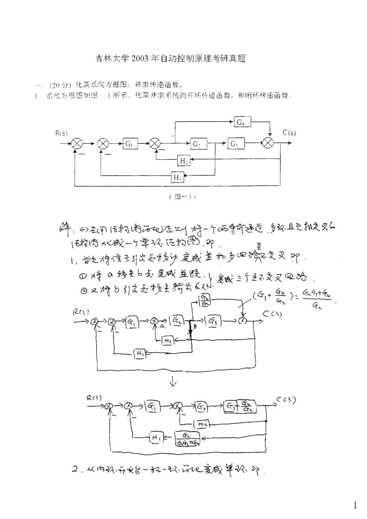 吉林大学901自动控制原理2003年真题答案