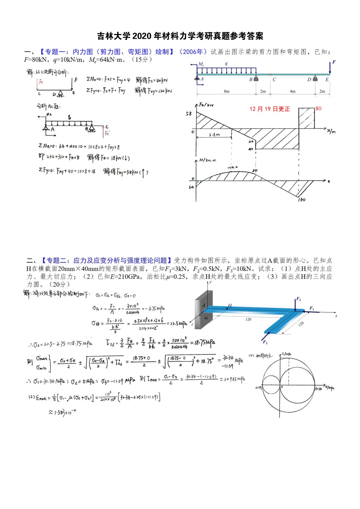 吉林大学2020年865材料力学考研真题参考答案