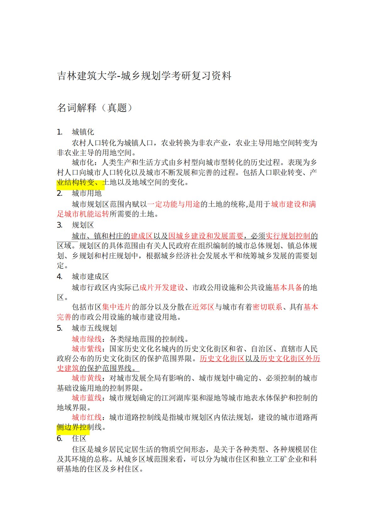 吉林建筑大学612城市规划原理复习资料