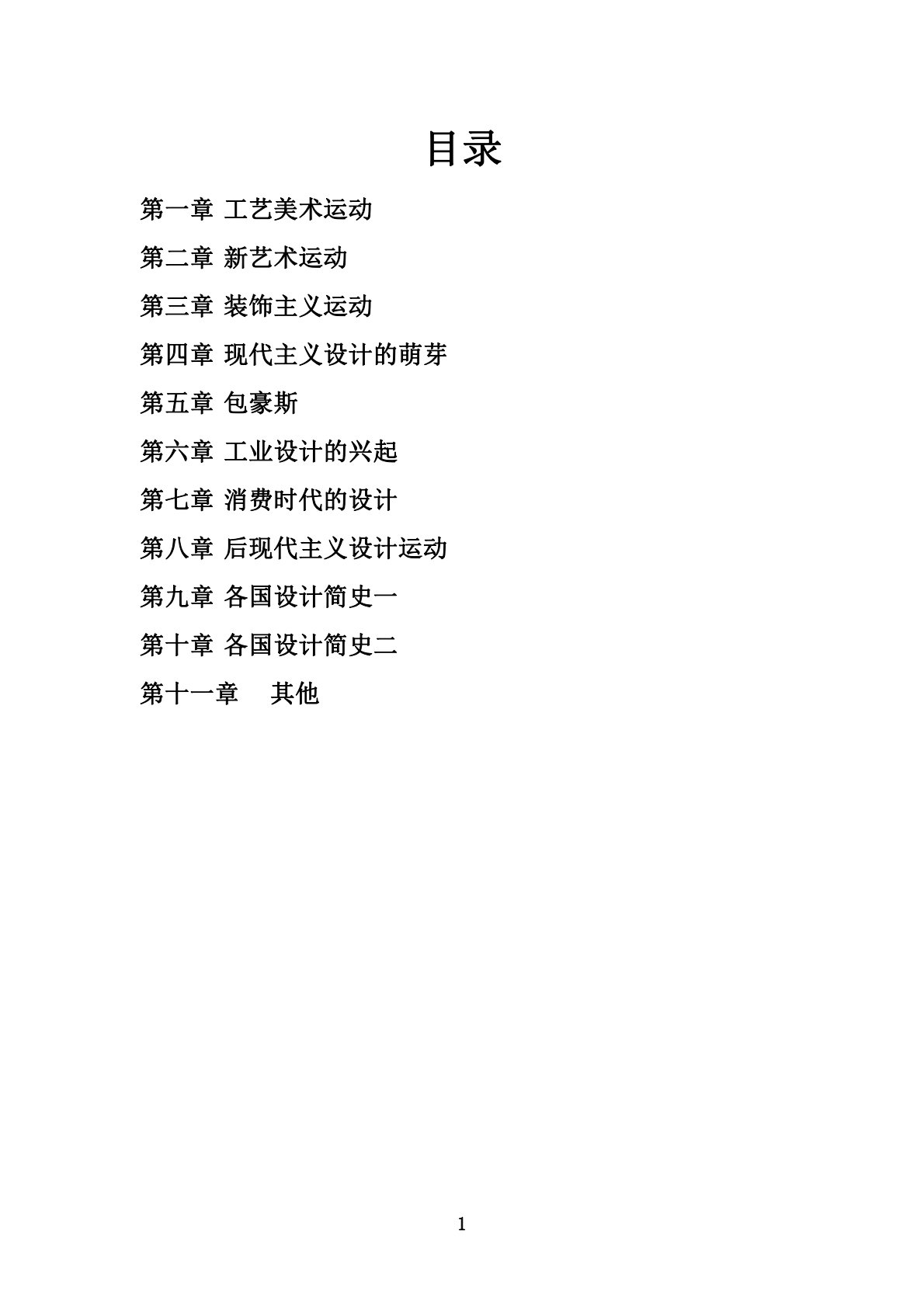 1目录第一章工艺美术运动第二章新艺术运动第三章装饰主义运动第四章现代主义设计的萌芽第五章包豪斯第六章工业设计的兴起第七章消费时代的设计第八章后现代主义设计运动第九章各国设计简史一第十章各国设计简史二第十一章其他2第一章工艺美术运动工艺美术运动:▲(名词解释、简答、论述、2022论述题)国家:英国时间:十九世纪下半叶后(19世纪60年代)发展成为一场国际运动。起因:针对室内家具、室内产品、建筑的工业批量生产所造成的设计水准下降的局面。理论指导:作家约翰拉斯金代表人物:艺术家、诗人威廉莫里斯。影响集中:受日本艺术的影响,主要集中在首饰书籍装帧等方面。目的:1、为了解决工业化对传统建筑、传统手工业的...