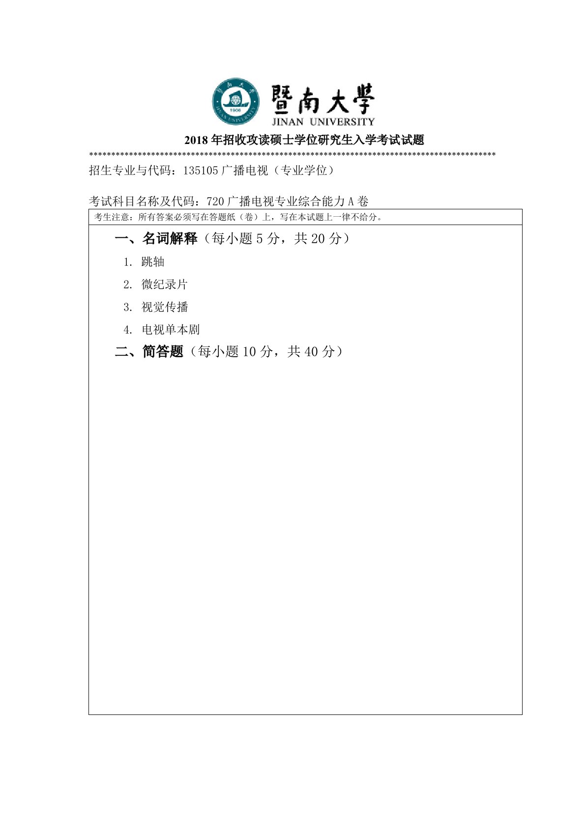 暨南大学720广播电视专业综合能力2018年真题.doc