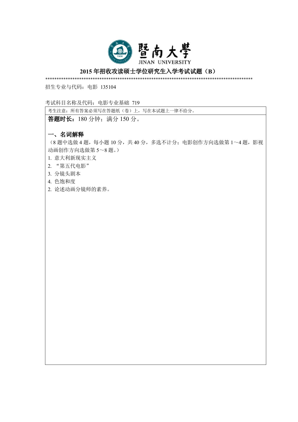 暨南大学719电影专业基础2015年真题.doc