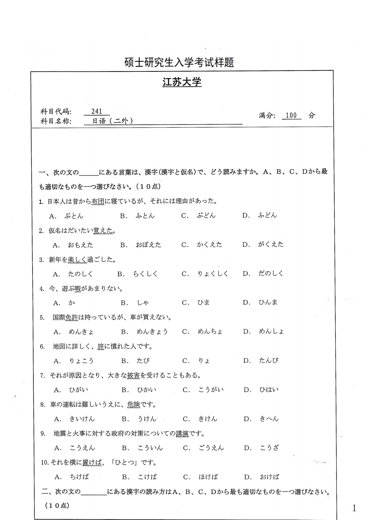 江苏大学241日语(二外)2013年真题