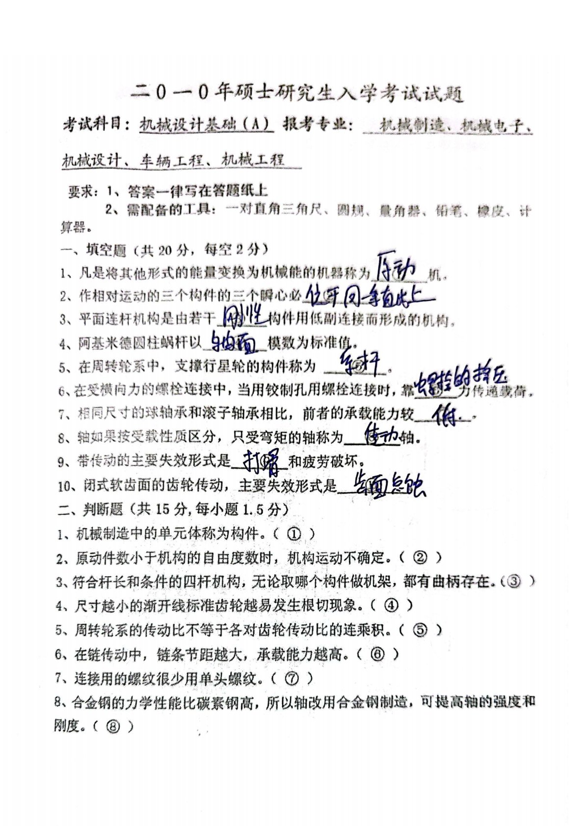 江西理工大学851机械设计基础2010年真题答案