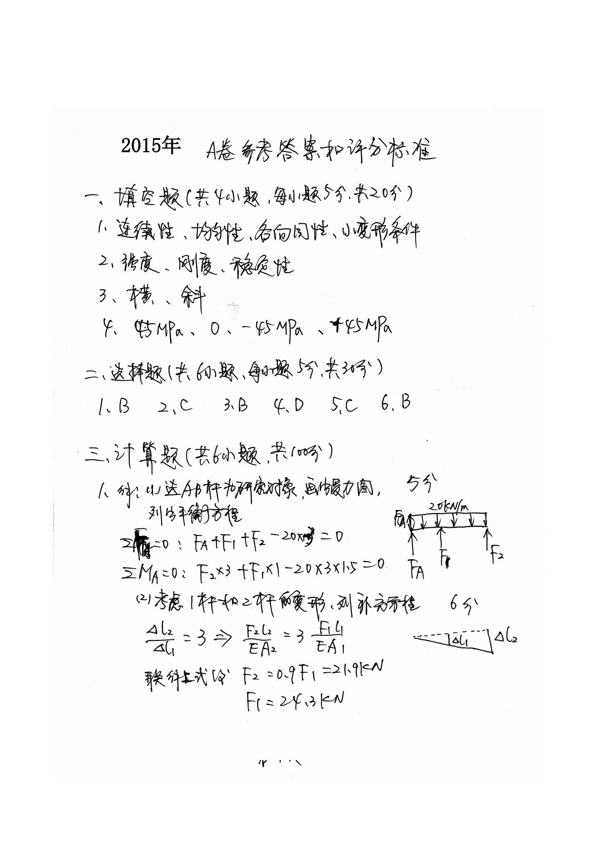 江西理工大学822工程力学2015年真题答案手写版
