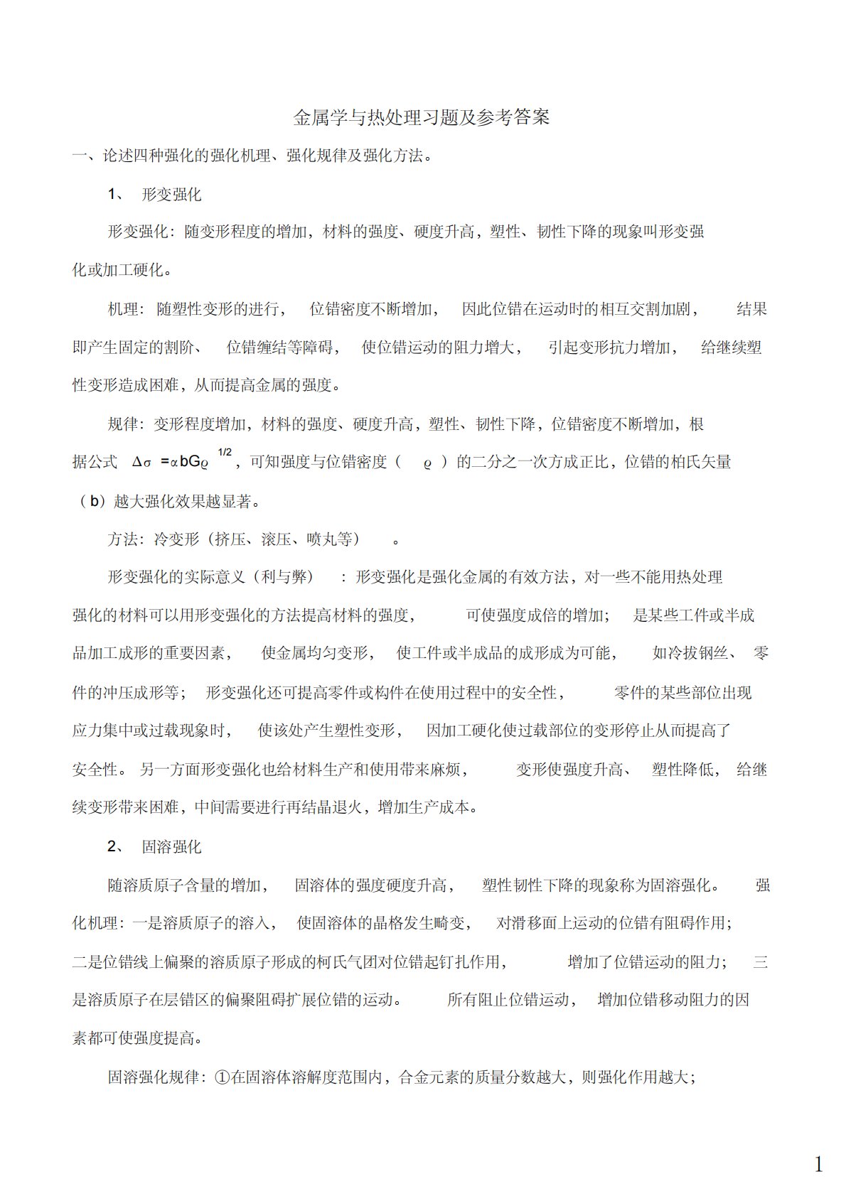 1¡¢ÐαäÇ¿»¯ÐαäÇ¿»¯£ºËæ±äÐγ̶ȵÄÔö¼Ó£¬²ÄÁϵÄÇ¿¶È¡¢Ó²¶ÈÉý¸ß£¬ËÜÐÔ¡¢ÈÍÐÔϽµµÄÏÖÏó½ÐÐαäÇ¿½ðÊôѧÓëÈÈ´¦ÀíϰÌâ¼°²Î¿¼´ð°¸Ò»¡¢ÂÛÊöËÄÖÖÇ¿»¯µÄÇ¿»¯»úÀí¡¢Ç¿»¯¹æÂɼ°Ç¿»¯·½·¨¡£»¯»ò¼Ó¹¤Ó²»¯¡£»úÀí£ºËæËÜÐÔ±äÐεĽøÐУ¬Î»´íÃܶȲ»¶ÏÔö¼Ó£¬Òò´Ëλ´íÔÚÔ˶¯Ê±µÄÏ໥½»¸î¼Ó¾ç£¬½á¹û¼´²úÉú¹Ì¶¨µÄ¸î½×¡¢Î»´í²ø½áµÈÕϰ£¬Ê¹Î»´íÔ˶...