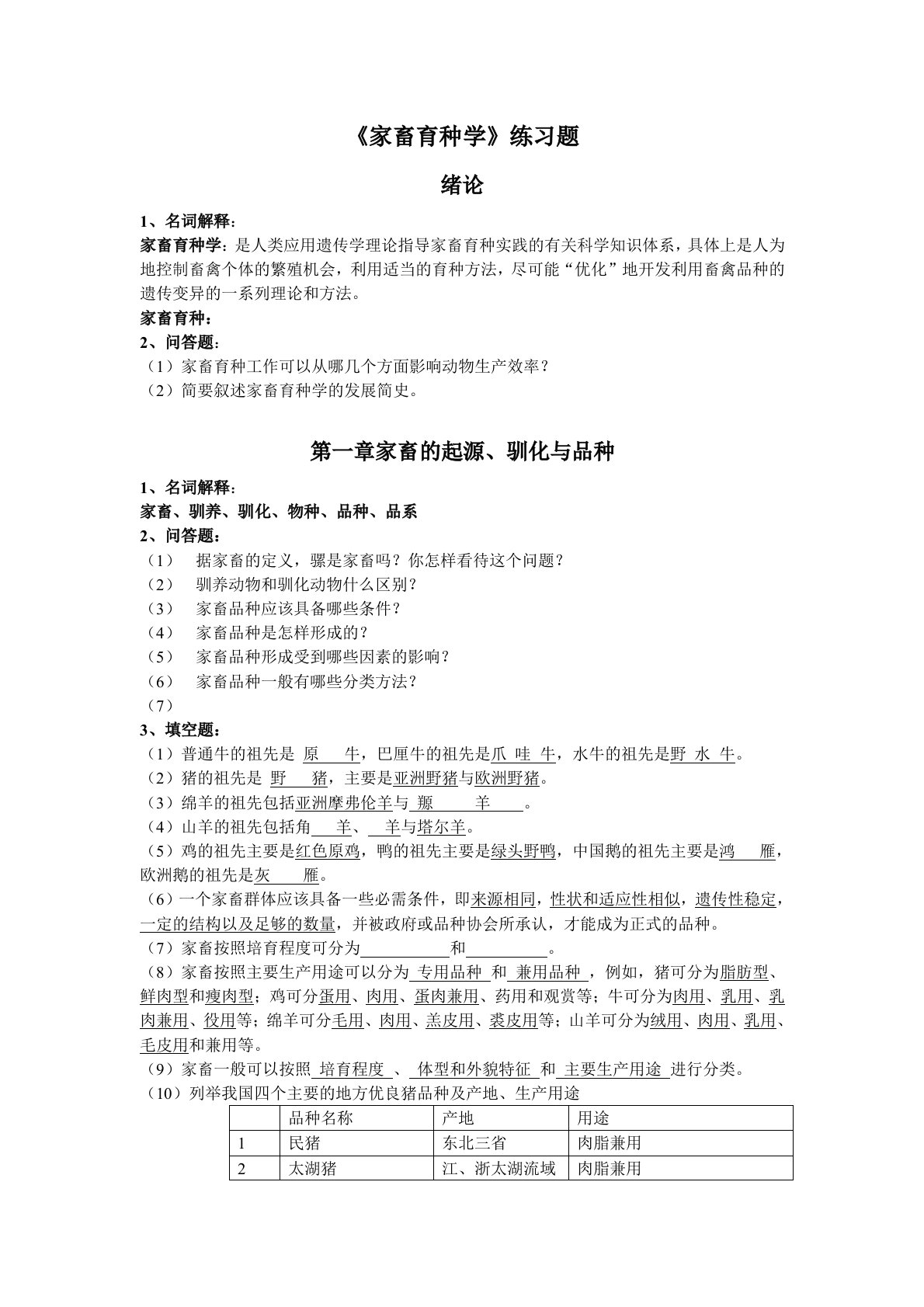 江西农业大学902畜牧学《家畜育种学》练习题