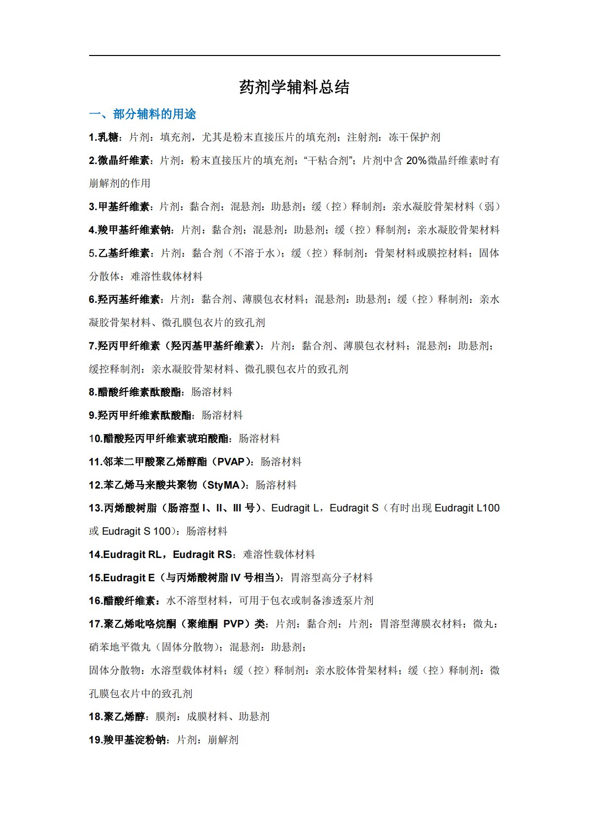 江西中医药大学702药学综合二药剂学辅料横向总结