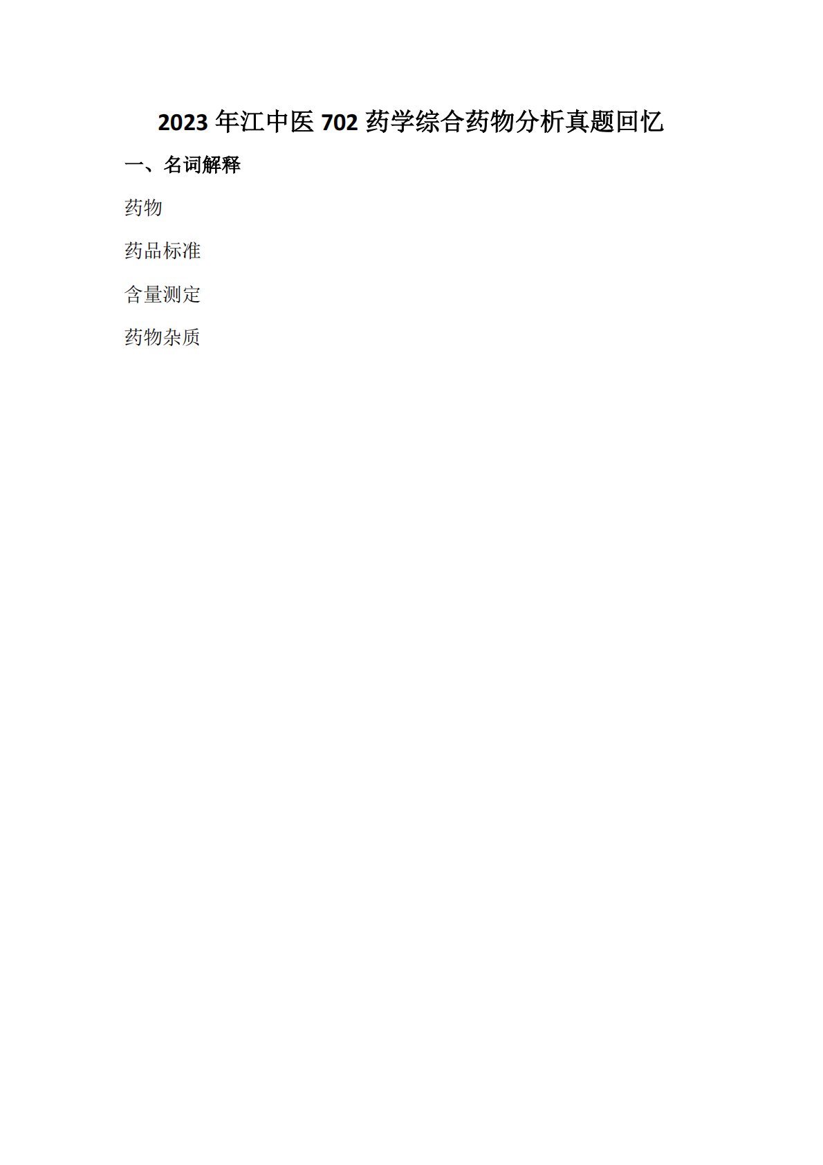 江西中医药大学702药学综合二药分2023年真题回忆版