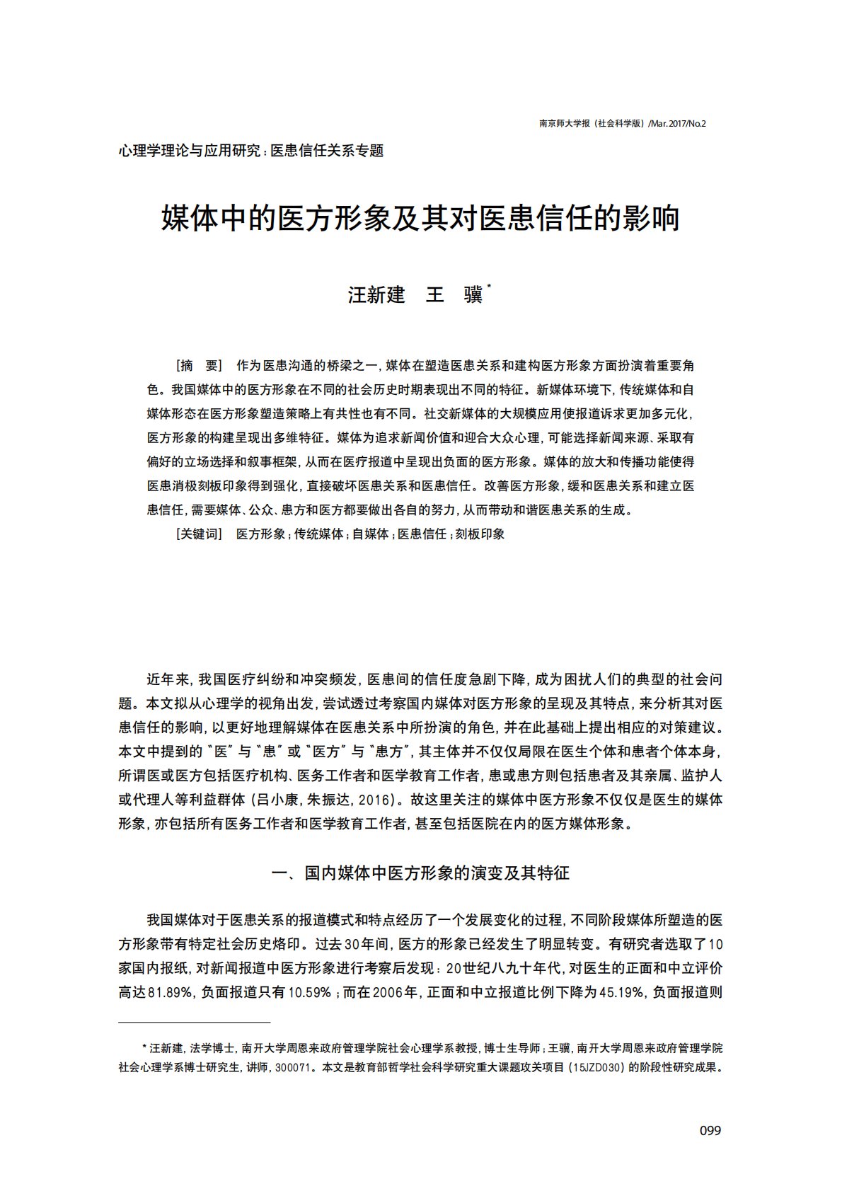 南开大学347心理学专业综合媒体中的医方形象及其对医患信任的影响